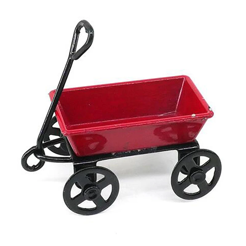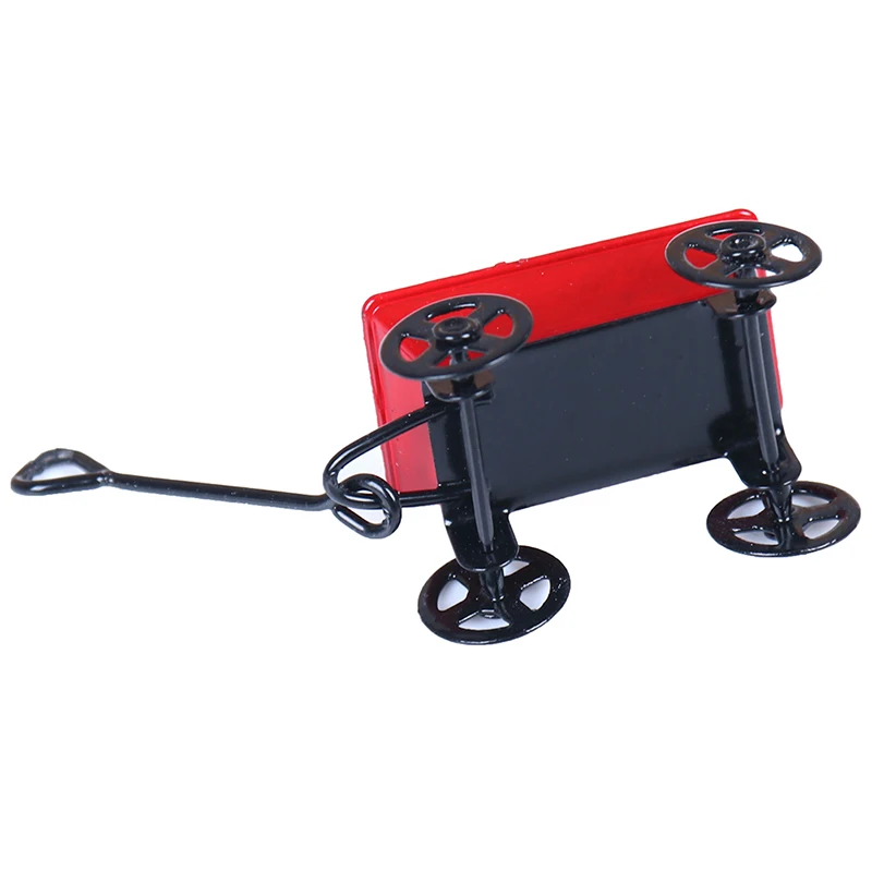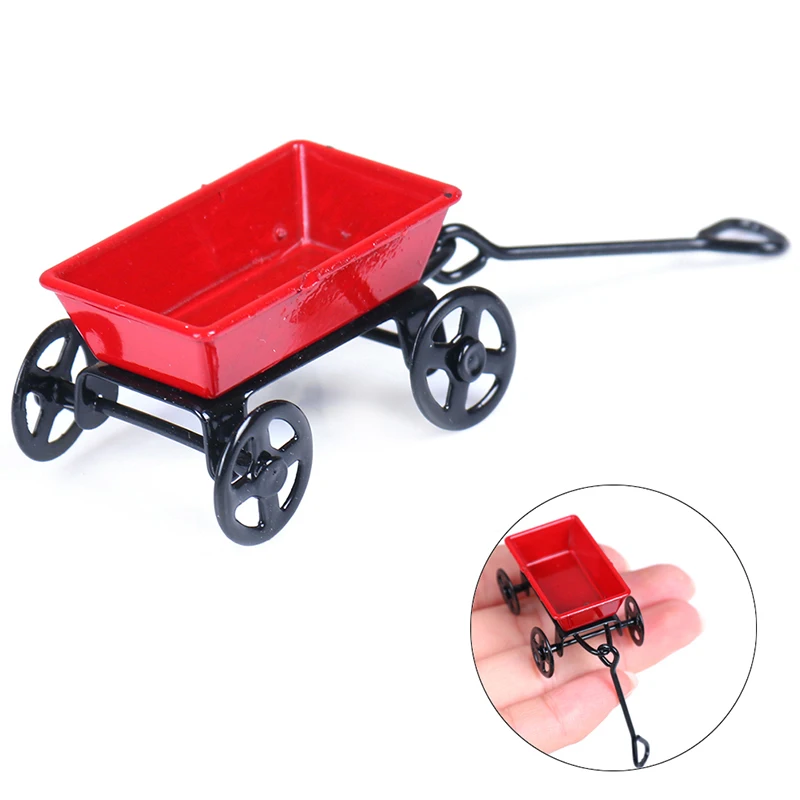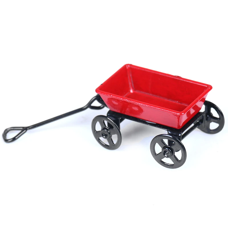 Мини-кукольный домик в масштабе 1:12, игрушка, подарки, орнамент, миниатюрная металлическая красная маленькая тянущаяся тележка, садовая мебель, аксессуары