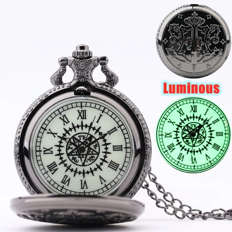 Светящиеся часы Kuroshitsuji, черный Батлер, кварцевые карманные часы, аналоговые часы с ожерельем, мужские и женские часы, подарок