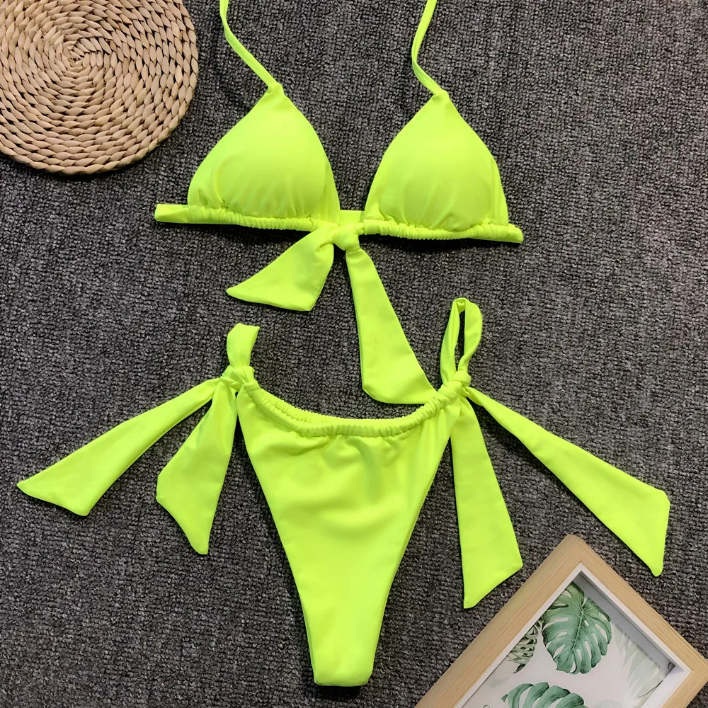 Треугольный Купальник Горячая Распродажа, Простой Бикини, однотонный раздельный купальник, Женский пикантный бикини, купальник бикини с леопардовым принтом, 2020