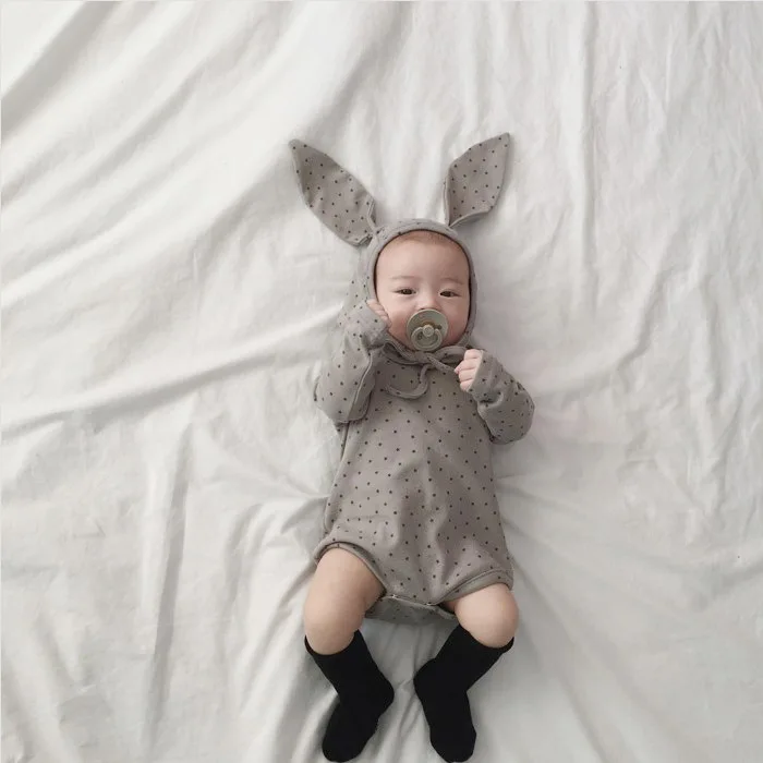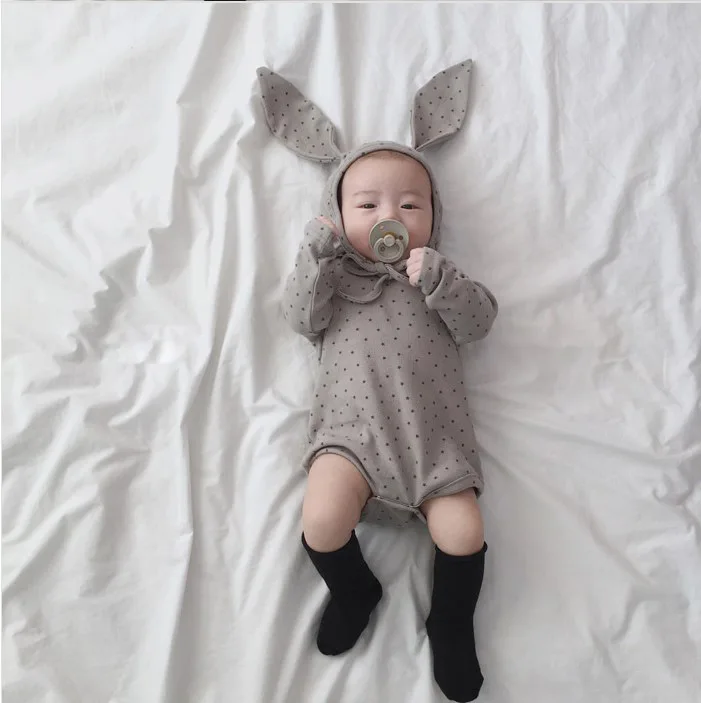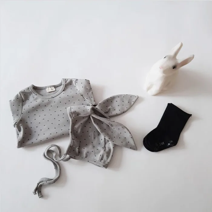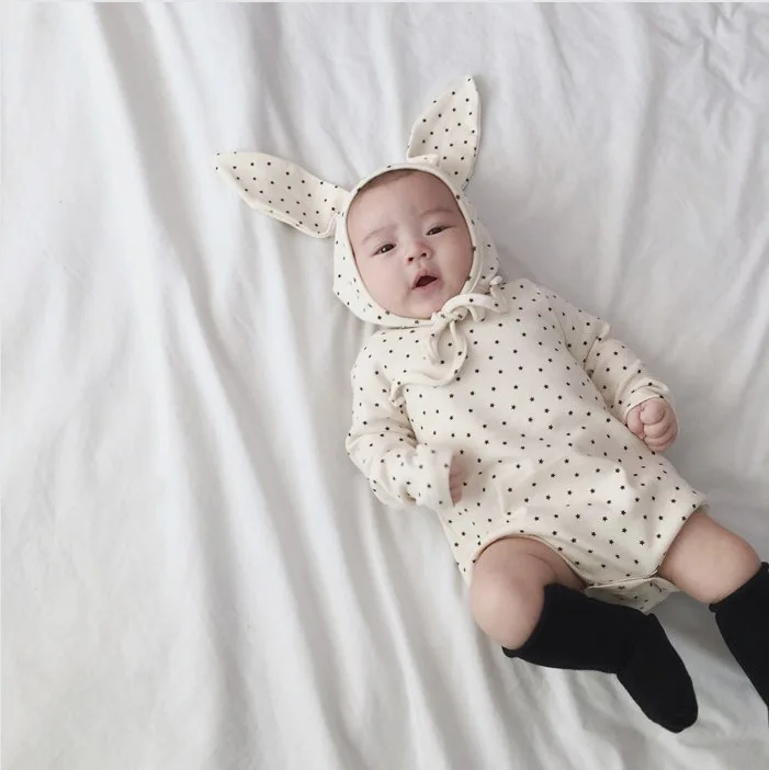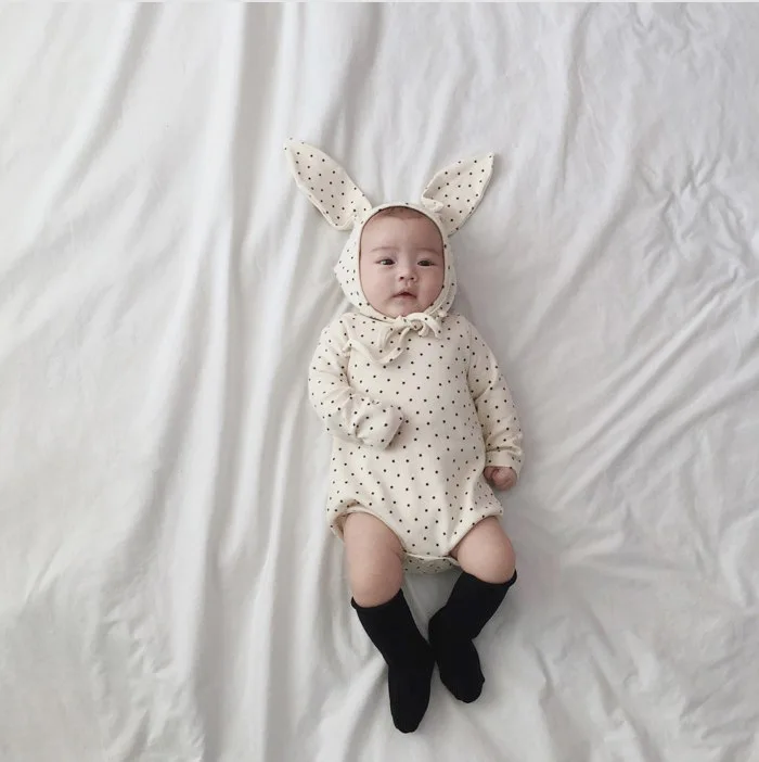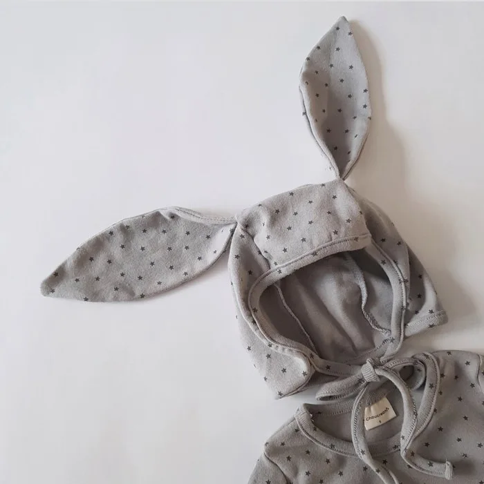 Новый Детский боди HoneyCherry, весенняя одежда для малышей, цельная сумка из чистого хлопка с изображением кролика и треугольника, комплект с головной убор