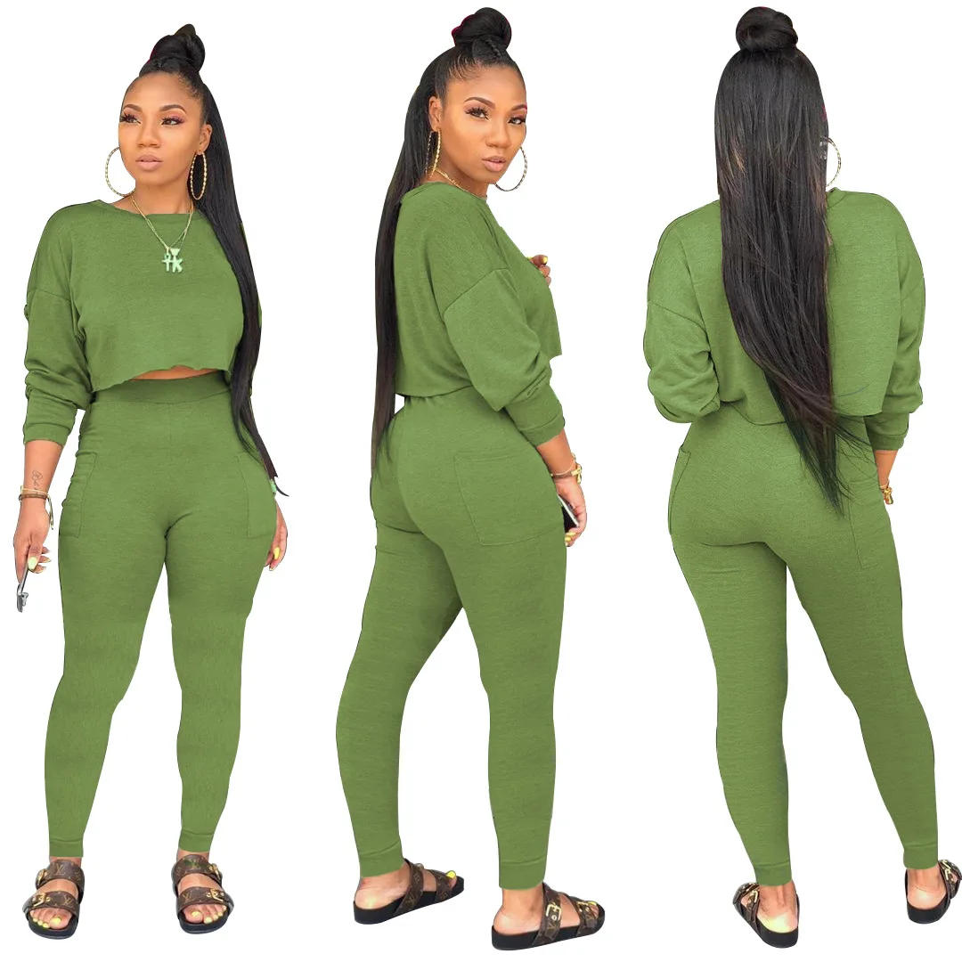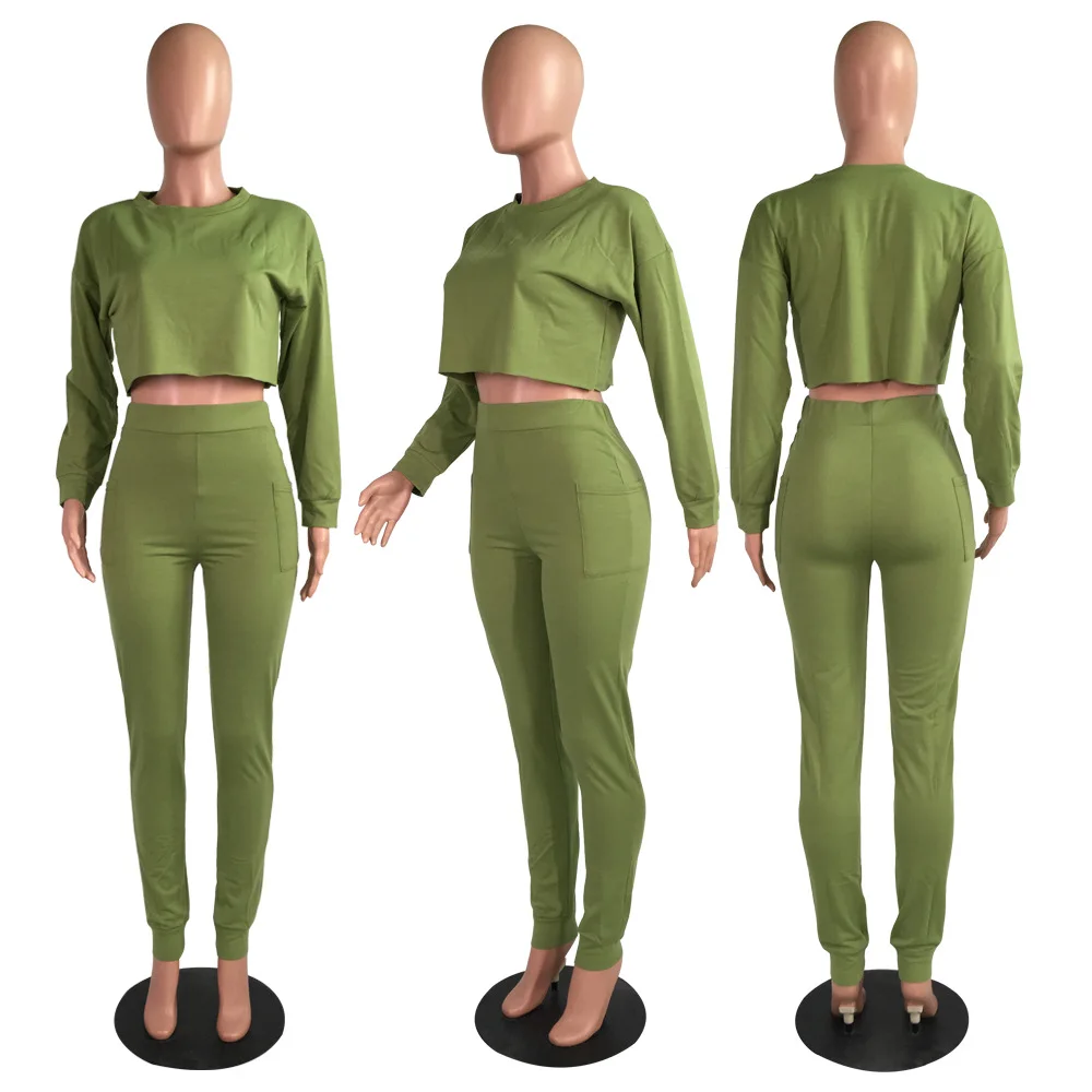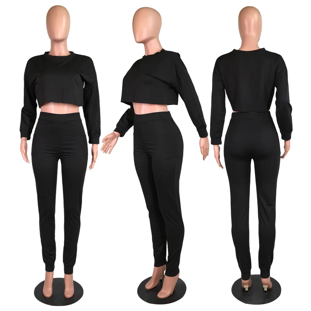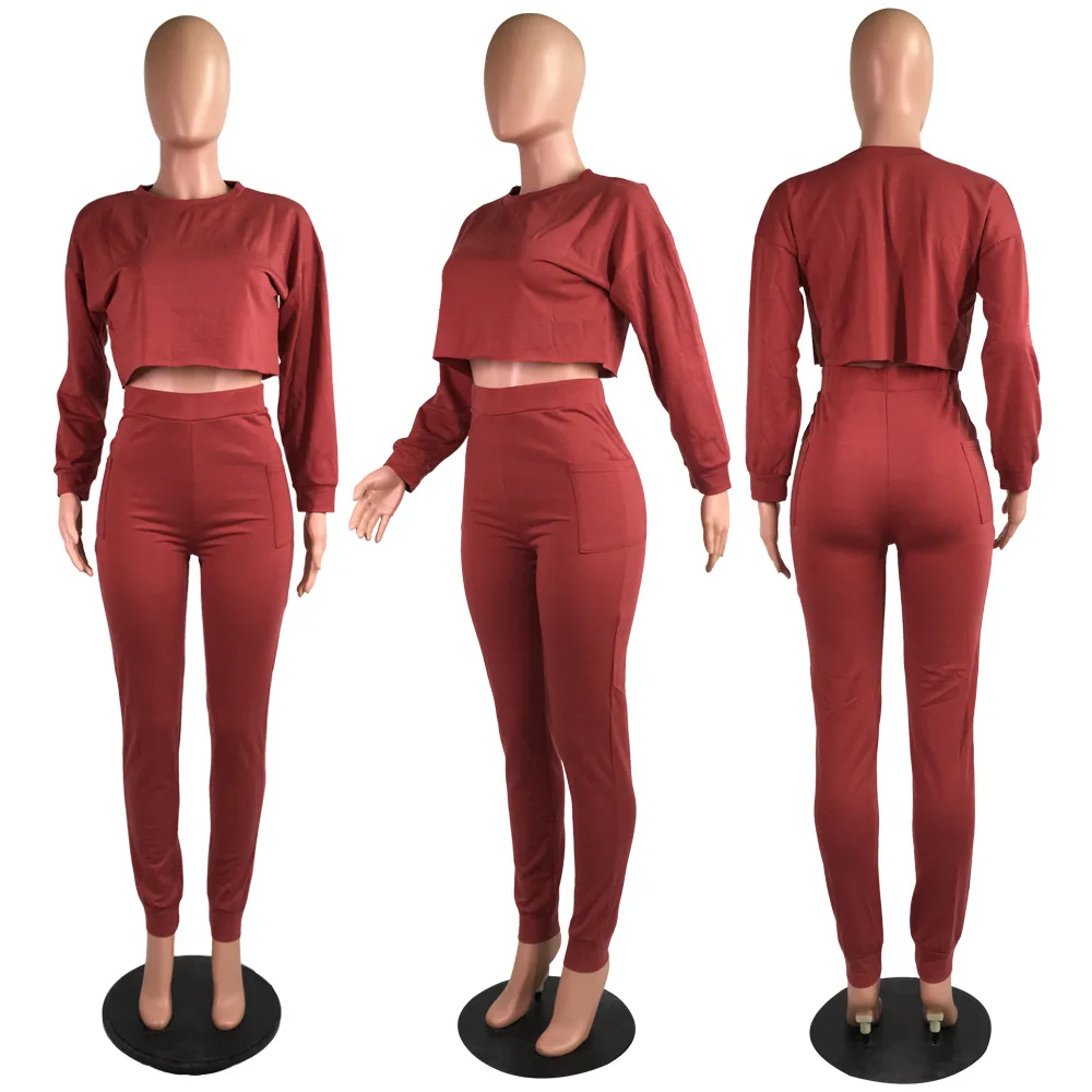 Женский Повседневный костюм Adogirl, комплект из двух предметов, укороченный топ с длинными рукавами и брюки-карандаш, спортивный костюм