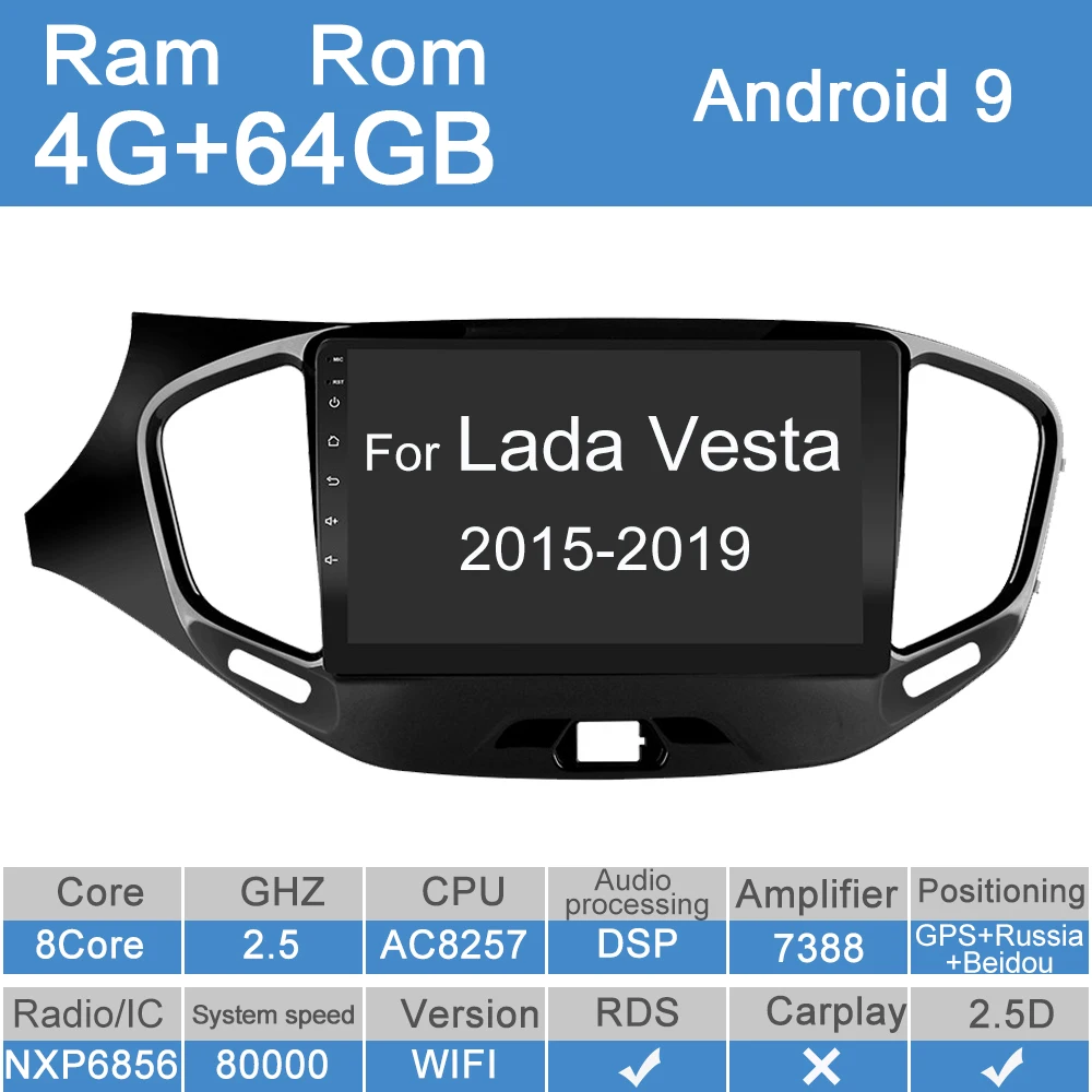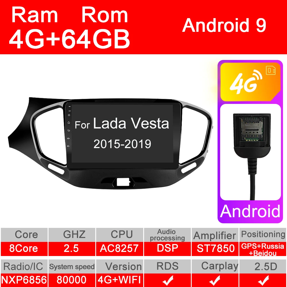 Автомагнитола 2 din для LADA Vesta Cross Sport 2015, 2016, 2017, 2018, 2019, 4G, мультимедийный видеоплеер, навигатор GPS 2 din, Android 10