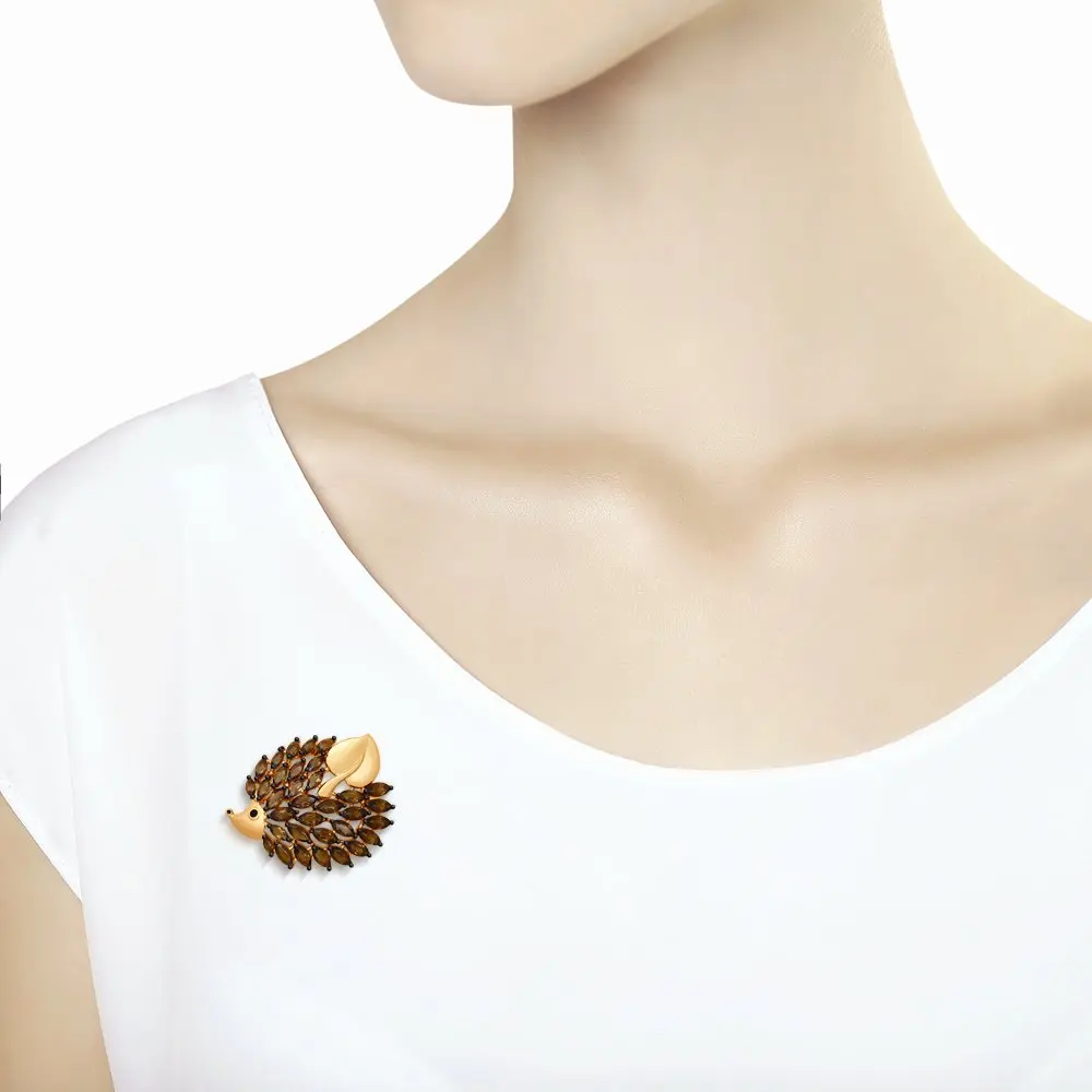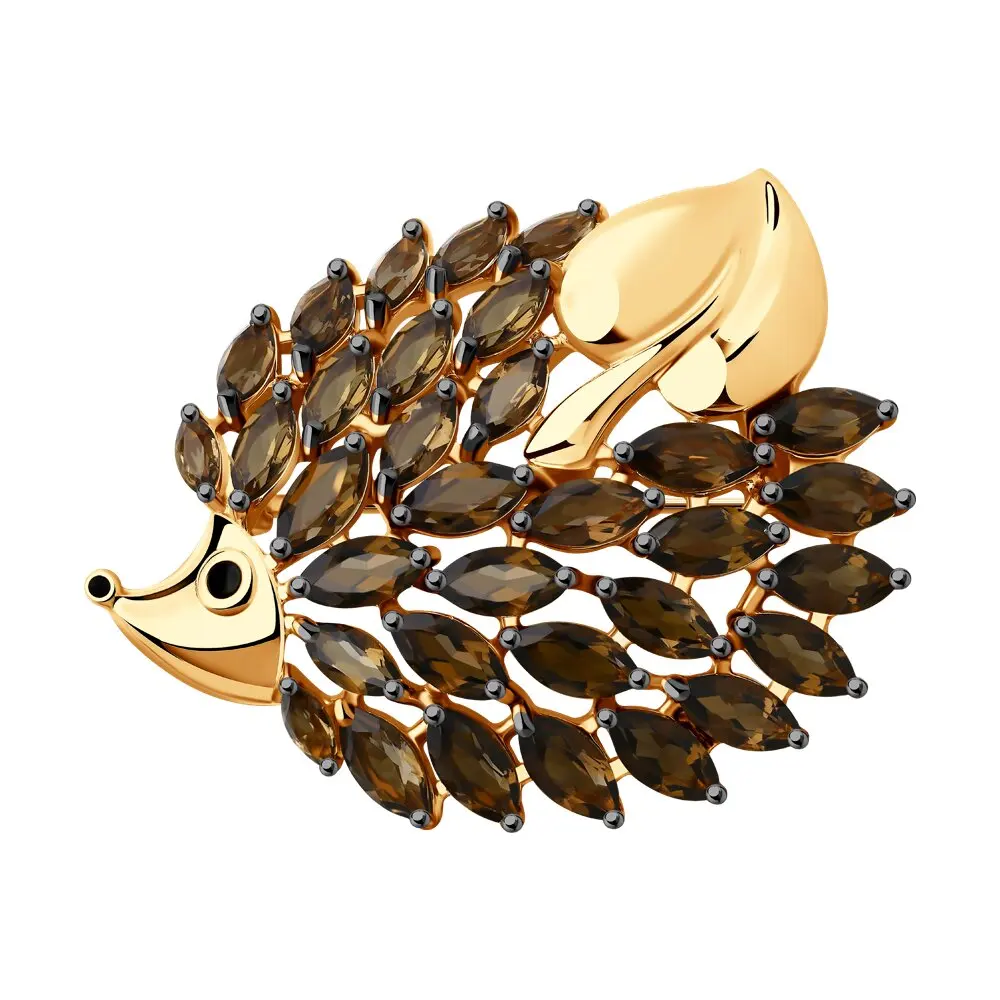Брошь Ёжик с раухтопазами SOKOLOV, Серебро, 925, Оригинальная продукция