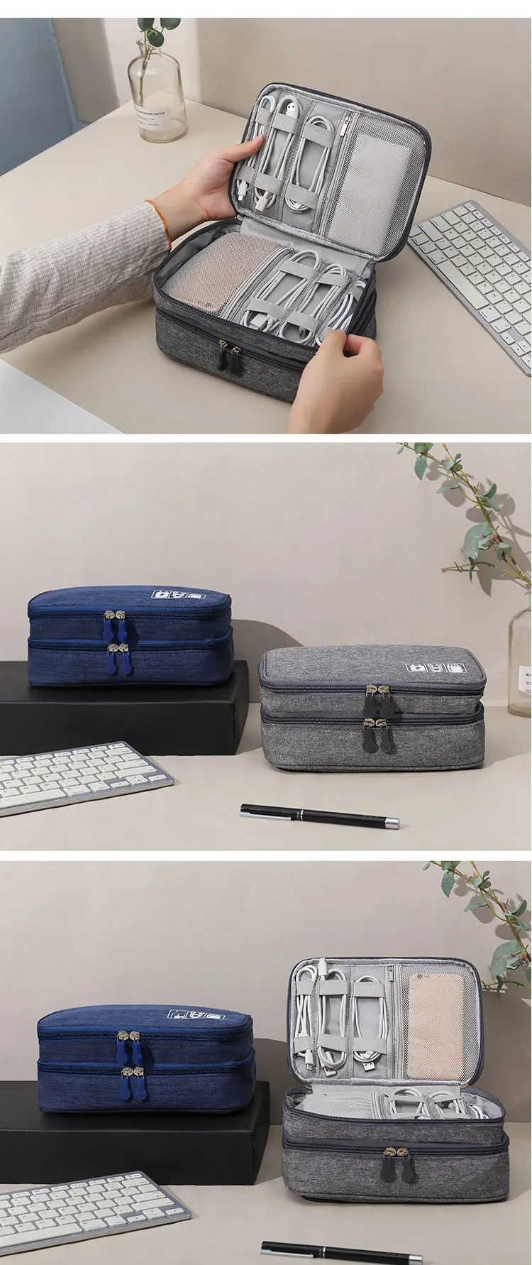 Вместительные дорожные сумки для хранения аксессуаров, двухслойная сумка для цифровой электроники, органайзер для внешнего аккумулятора, зарядного устройства, кабелей для передачи данных