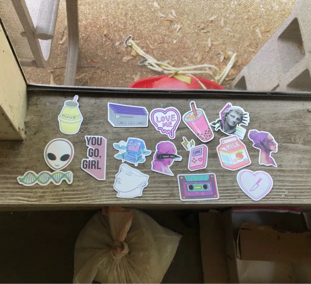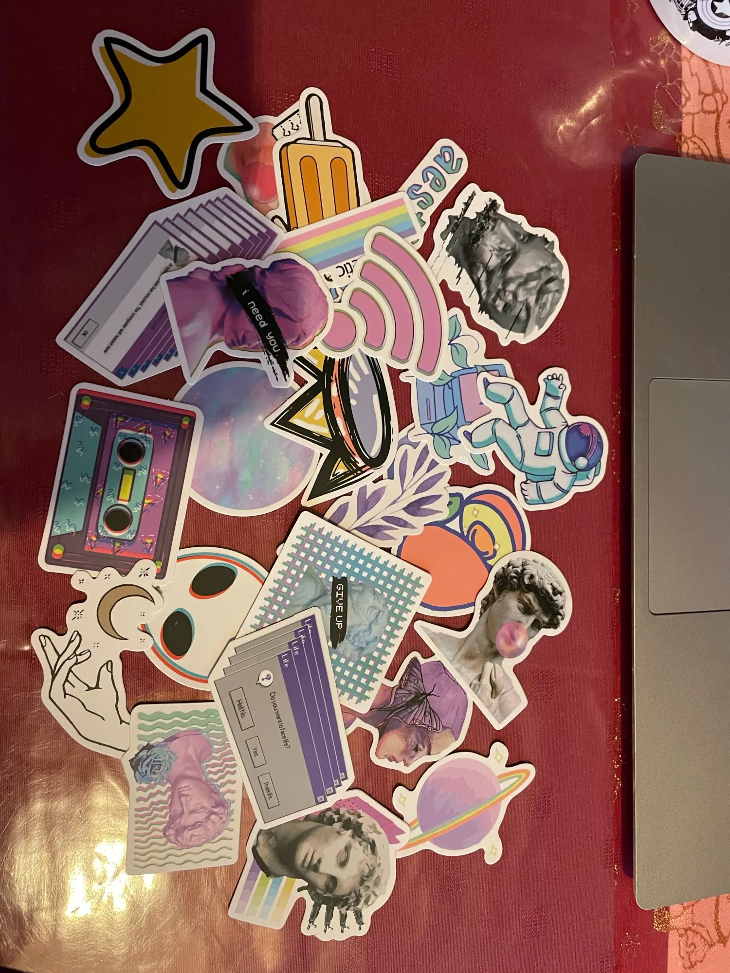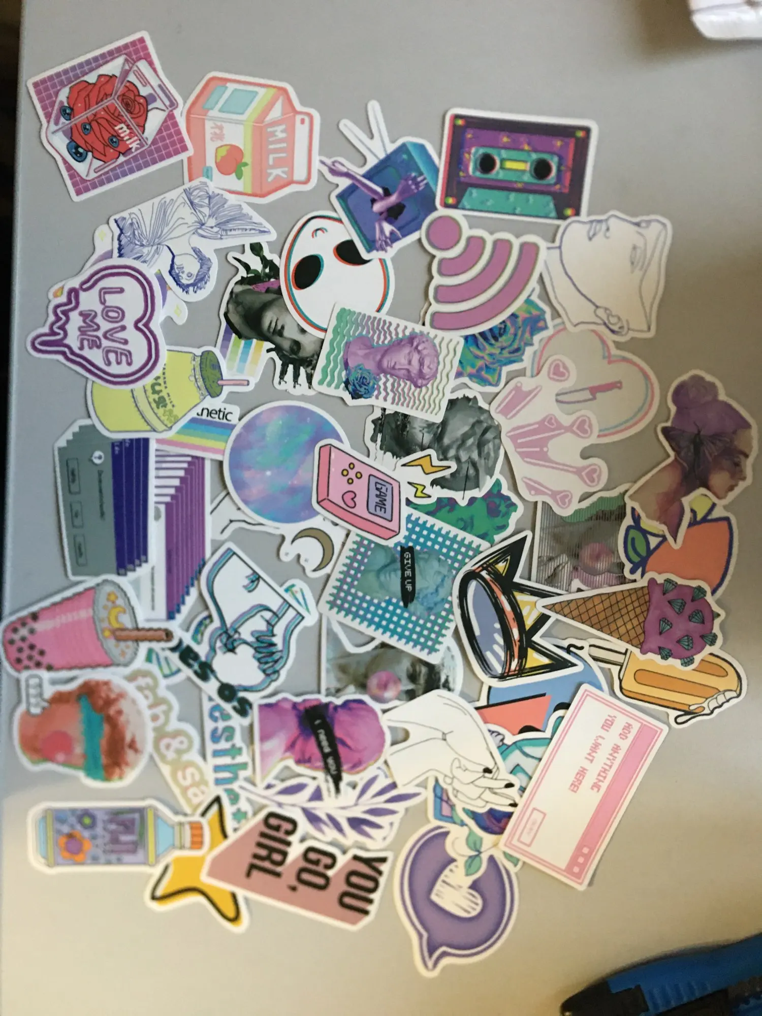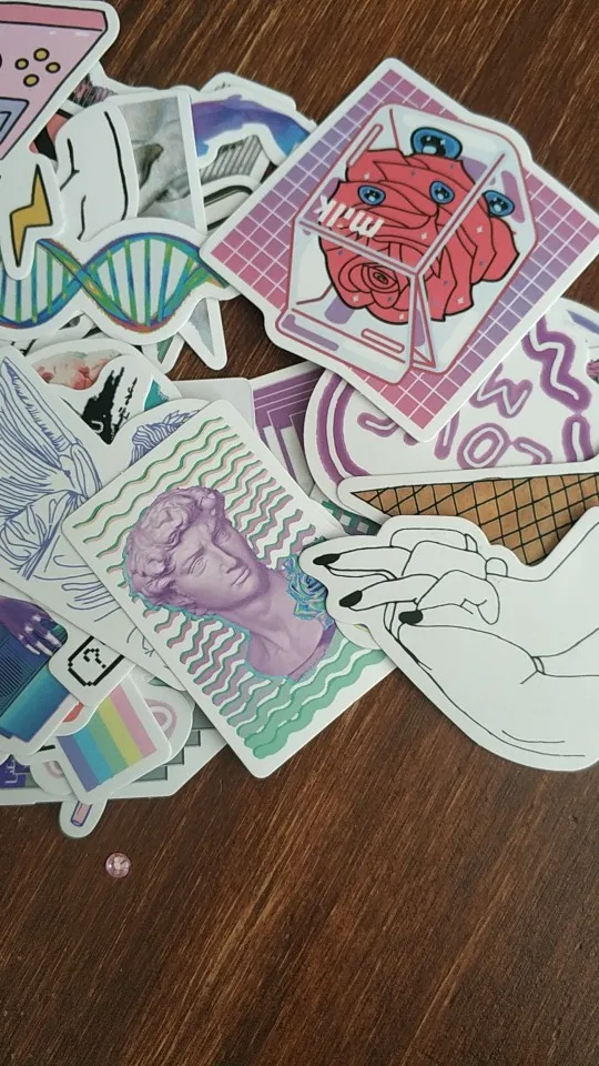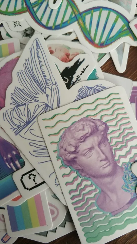 отличные матовые наклейки, среднего размера, ни одна не дублируется, все разные, цвета насыщенные, все в одной цветовой гамме