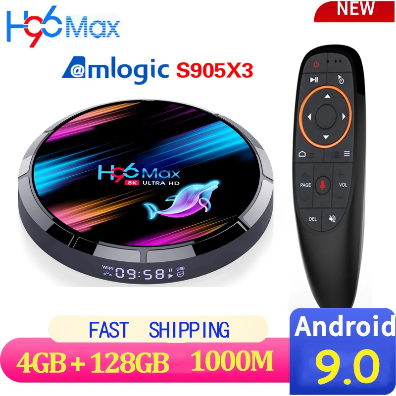 Приставка Смарт-ТВ H96 MAX X3, Android 9,0, 1000 м, Amlogic S905X3, 8K, 4 Гб, 128 ГБ, 64 ГБ, 2,4 дюйма