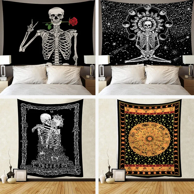 Гобелен с изображением скелета настенный подвесной ковер, ковер от солнца, психоделические украшения для дома