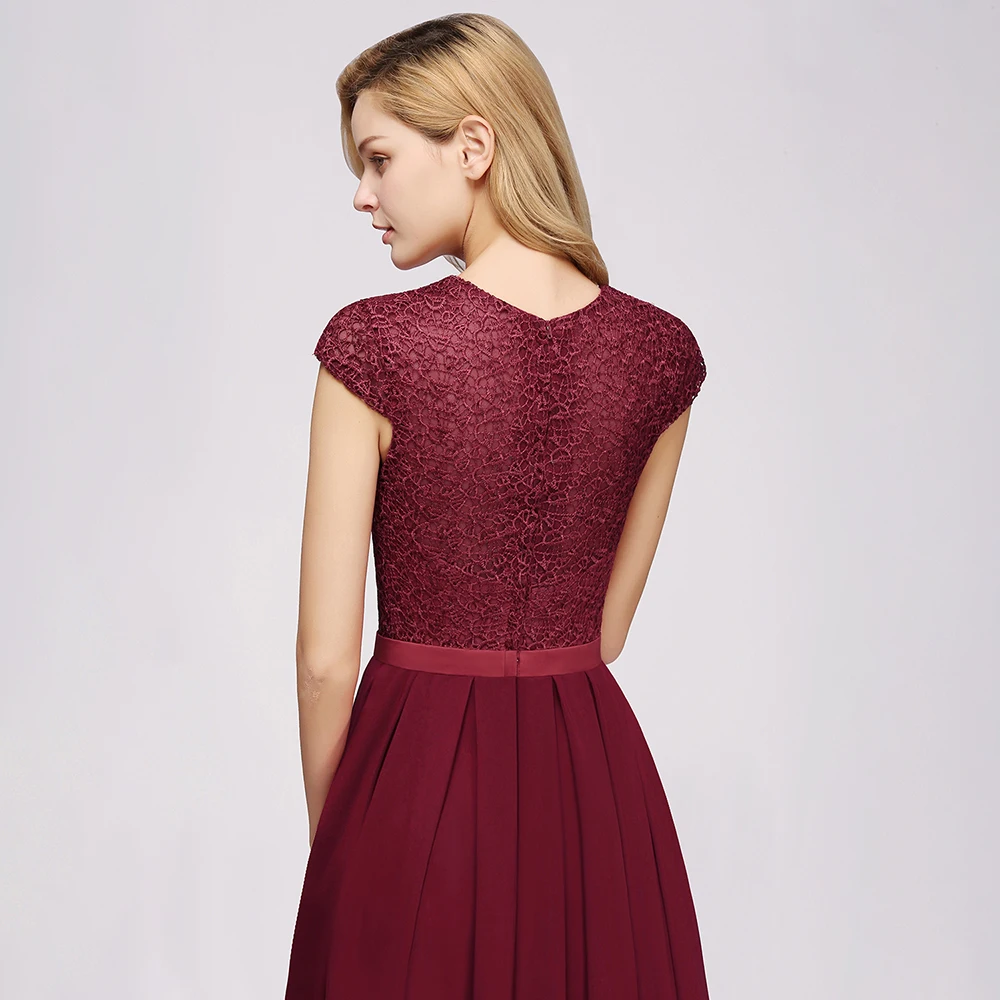 Элегантные кружевные шифоновые длинные платья подружки невесты, очаровательные свадебные гостевые Платья с коротким рукавом, бургундское платье d'honneur