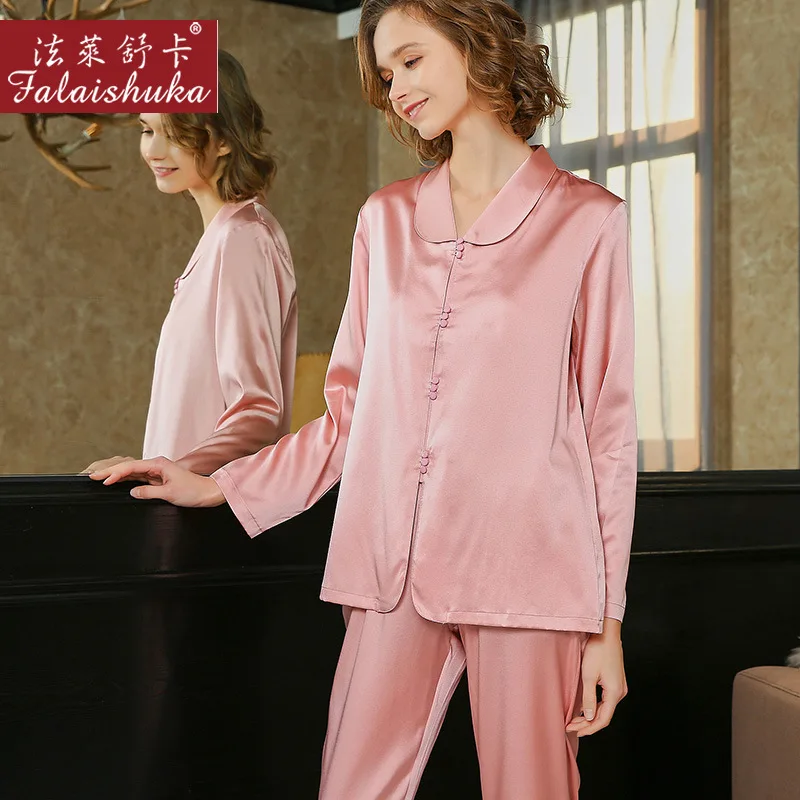 Новый Свежий Цветочный Сладкий 100% натуральный шелк пижамы наборы для женщин пижамы с длинным рукавом благородный натуральный шелк женские пижамы T8205