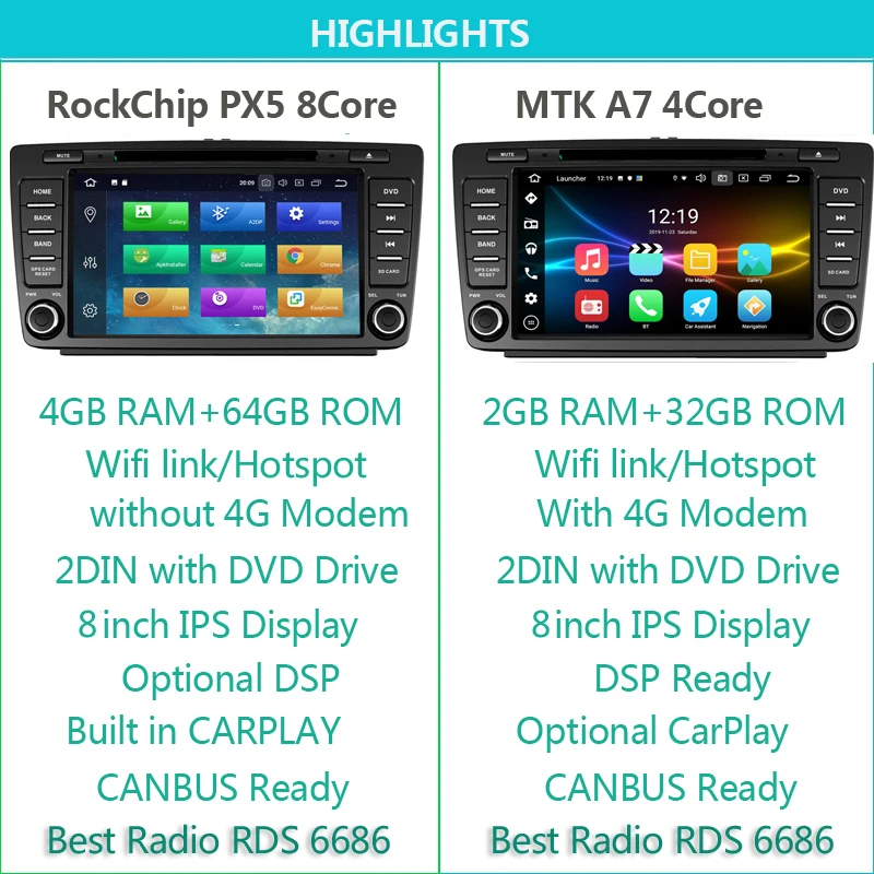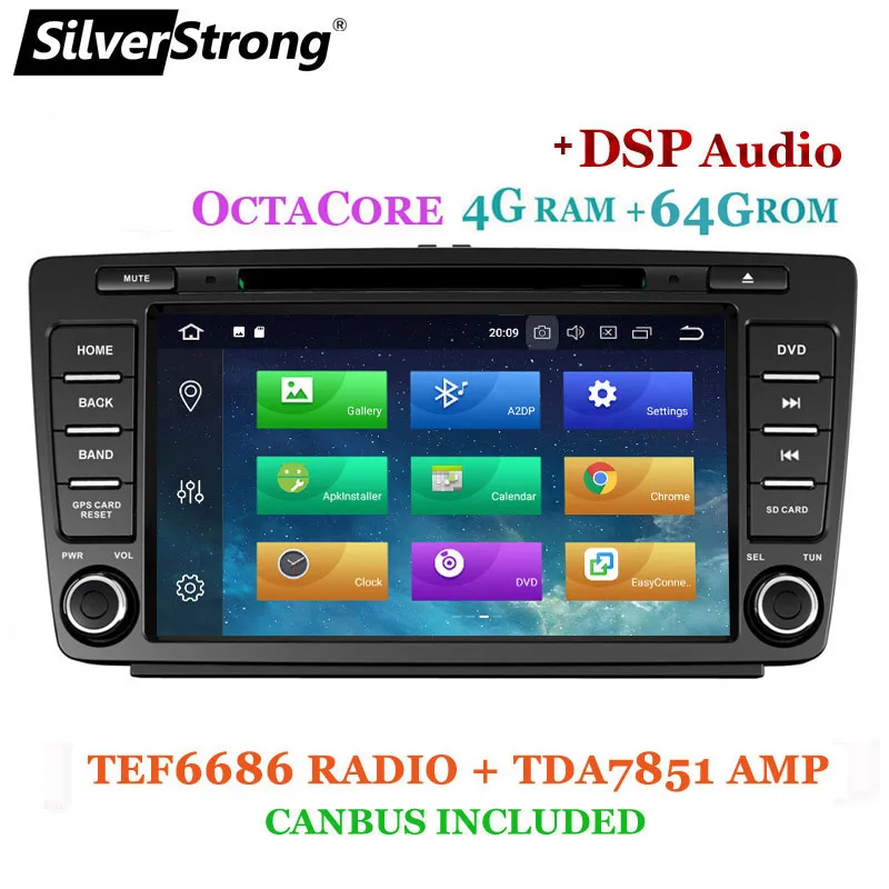 Автомобильный DVD, 2DIN,4G,Android 10,64 ГБ, 8-ядерный, для Skoda Octavia 2 A5, авто радио IPS DAB +, опция 2G32G,CarPlay,TPMS DSP