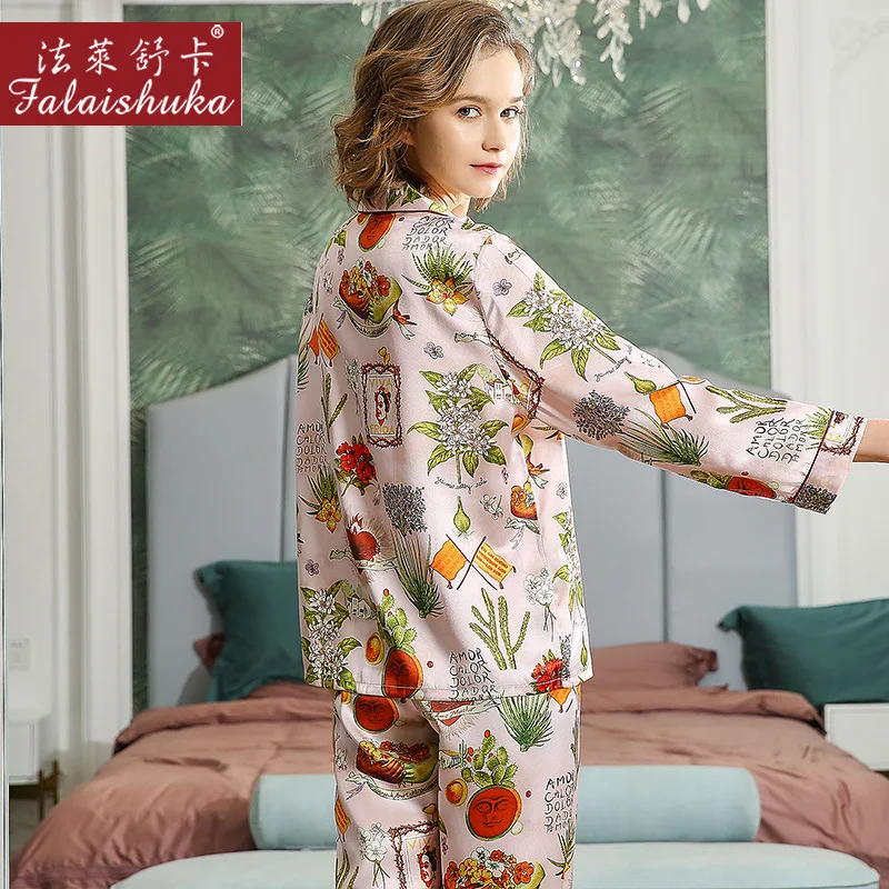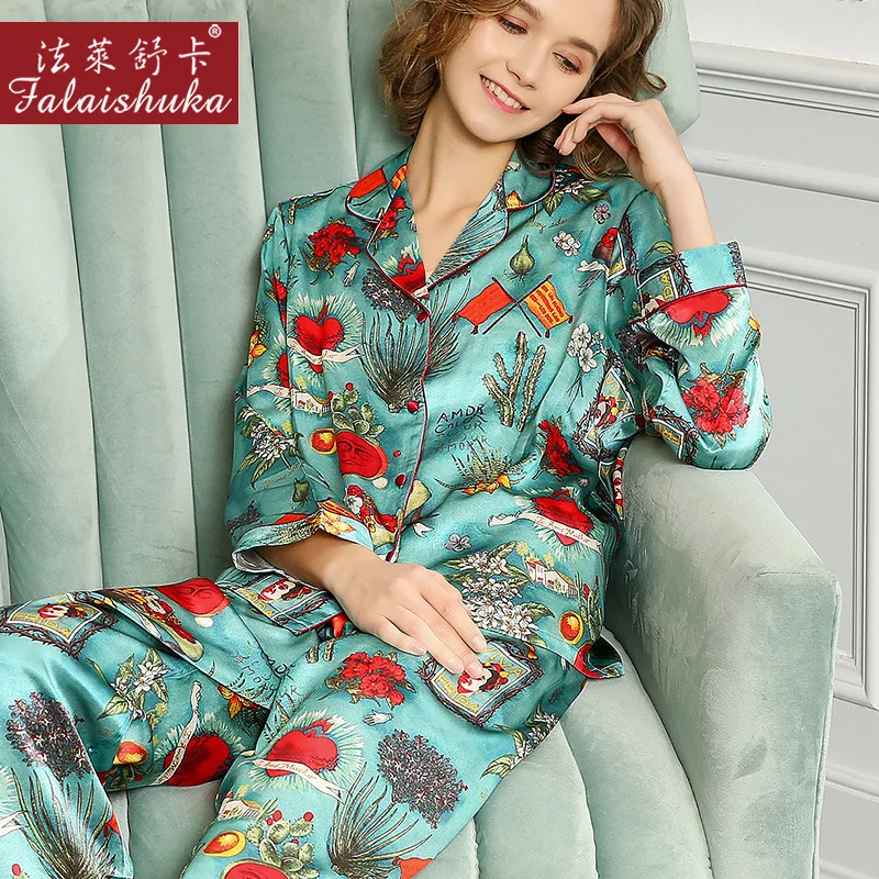 Новый Свежий Цветочный Сладкий 100% натуральный шелк пижамы наборы ...