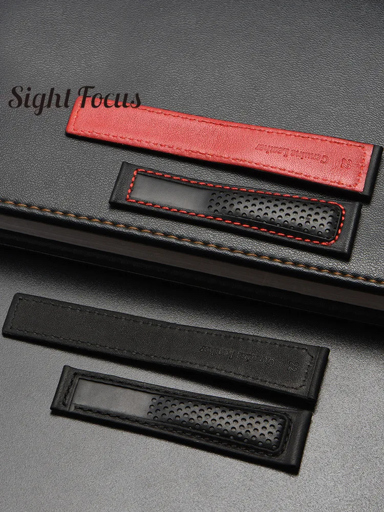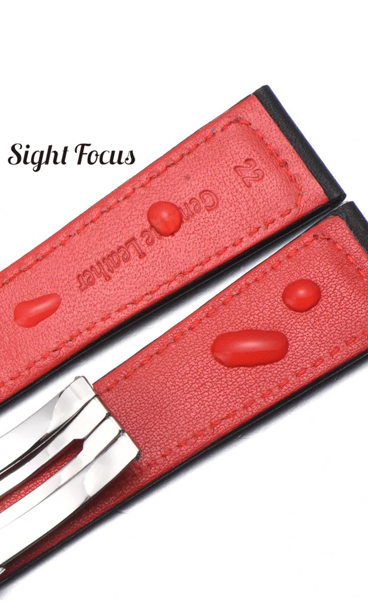Ремешок для часов, 22 мм, с перфорацией, кожаный, черный, красный