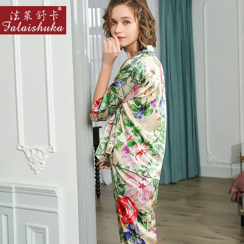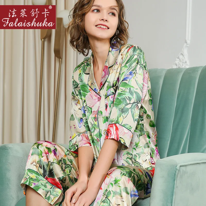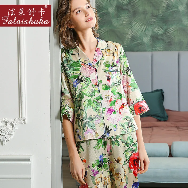 Новый Свежий Цветочный Сладкий 100% натуральный шелк пижамы наборы ...