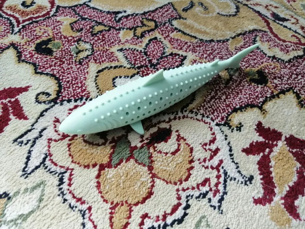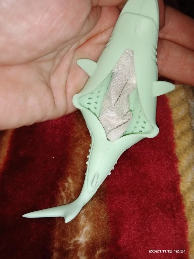 Кот его любит. Кошачья лапка не свежая, и кошке это не нравится. Акула пахнет сильным пластиком
