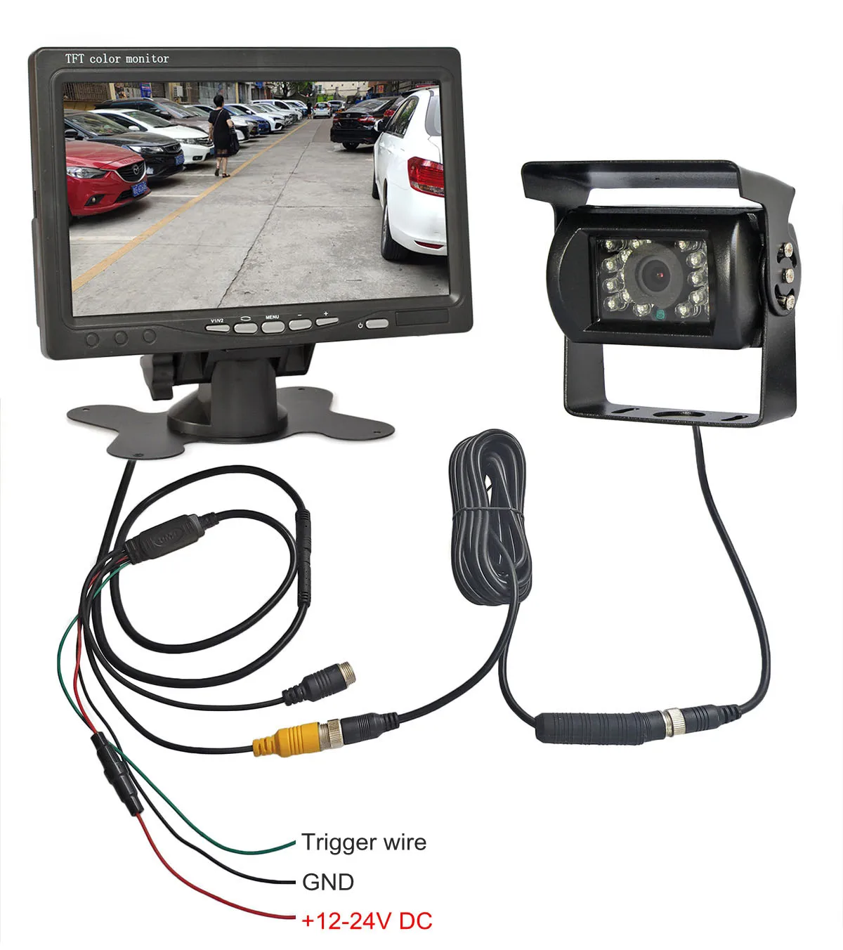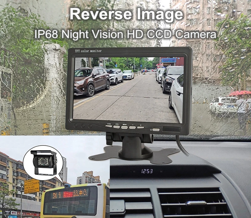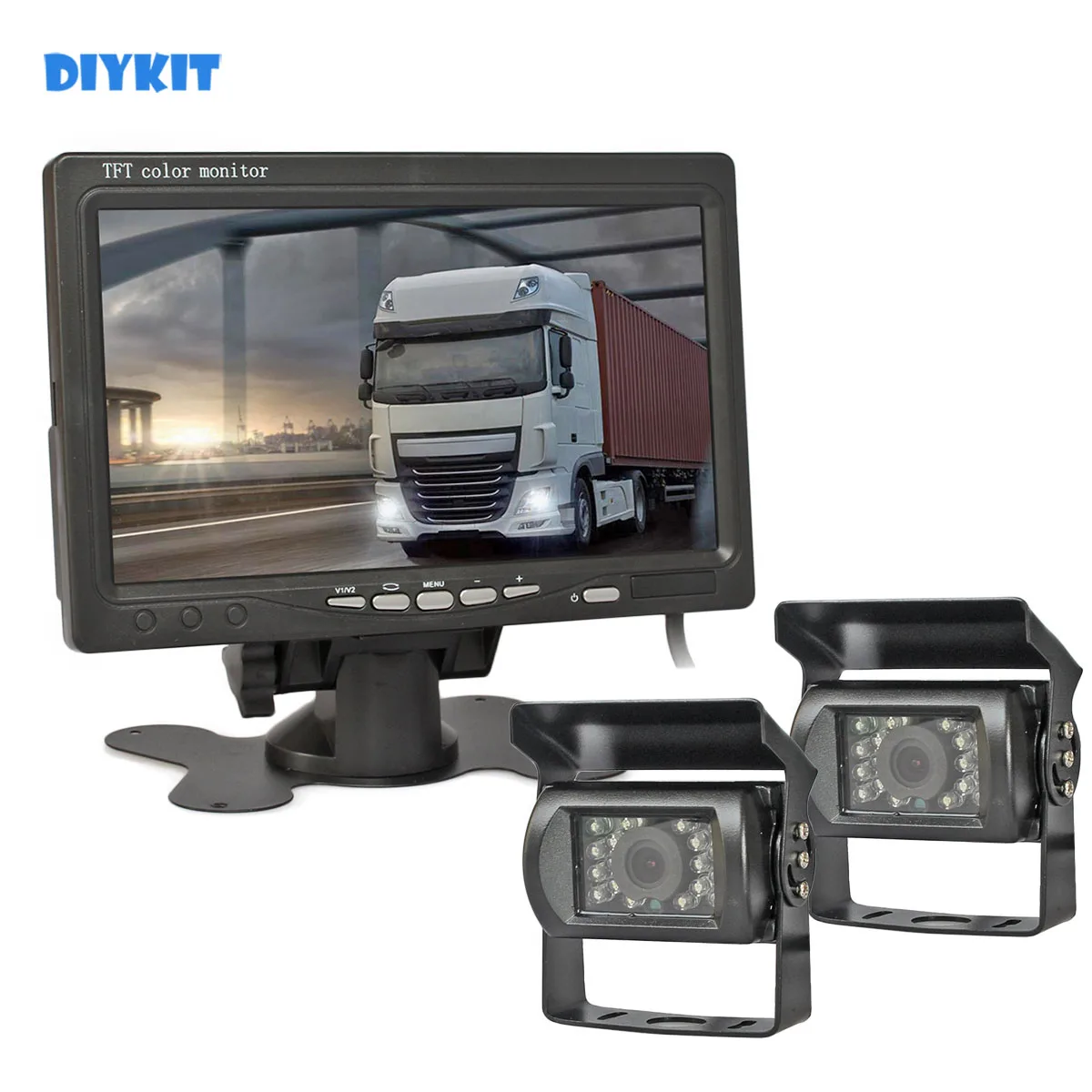 7 "TFT ЖК-дисплей автомобиля HD монитор 2 x 4pin Ночное ВИДЕНИЕ CCD камера заднего вида светодиодный Камера Системы для автобус, 12V - 24V DC