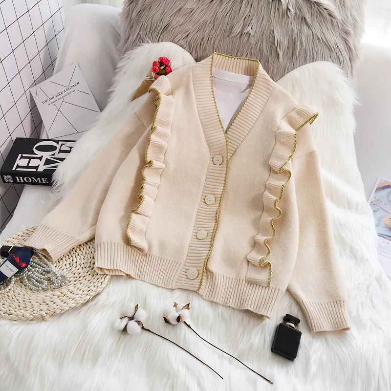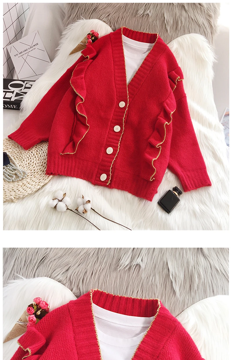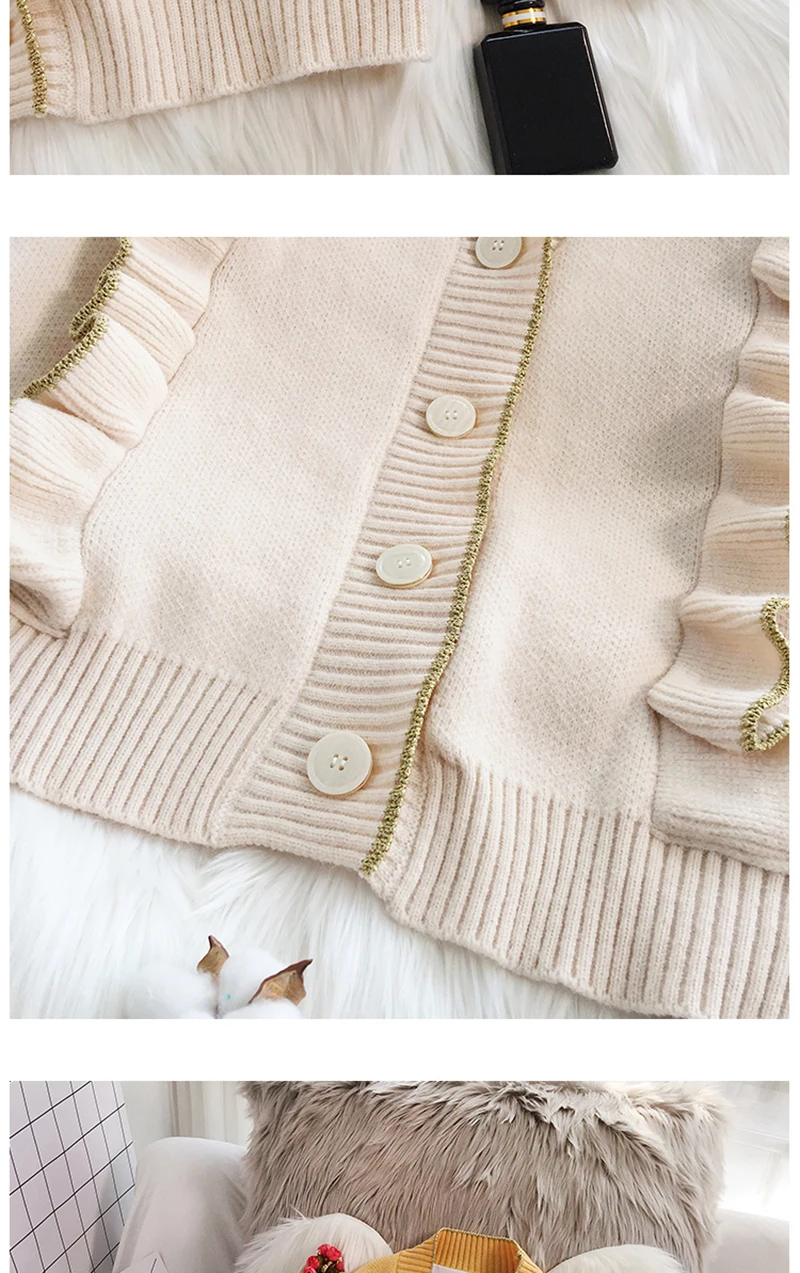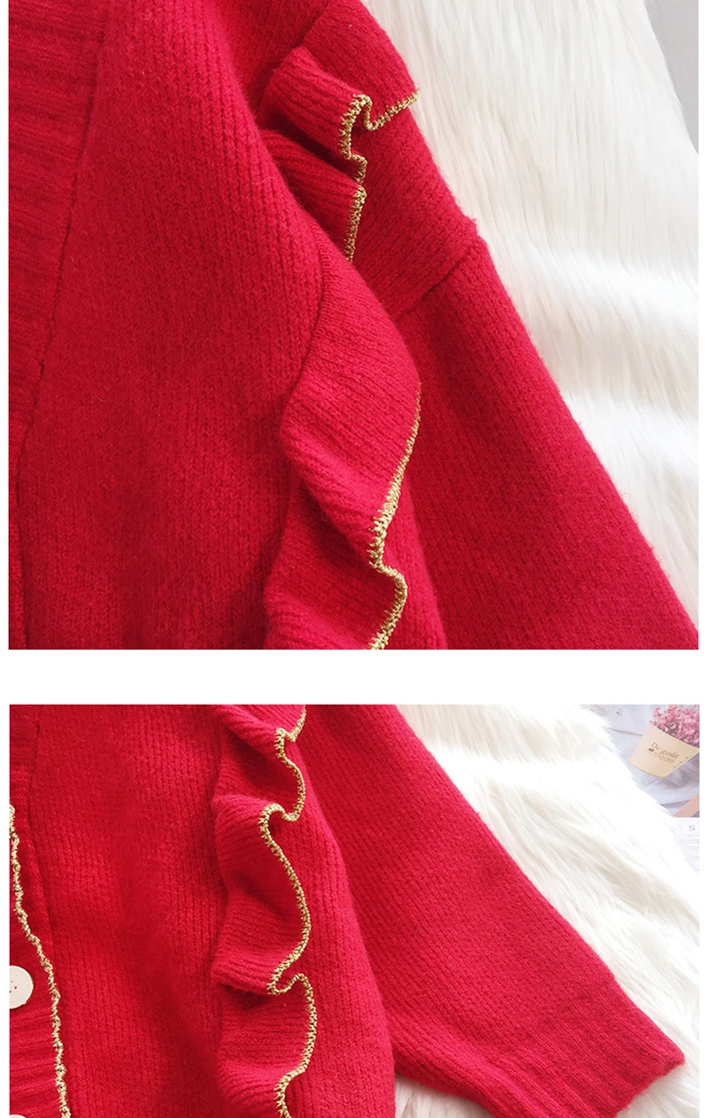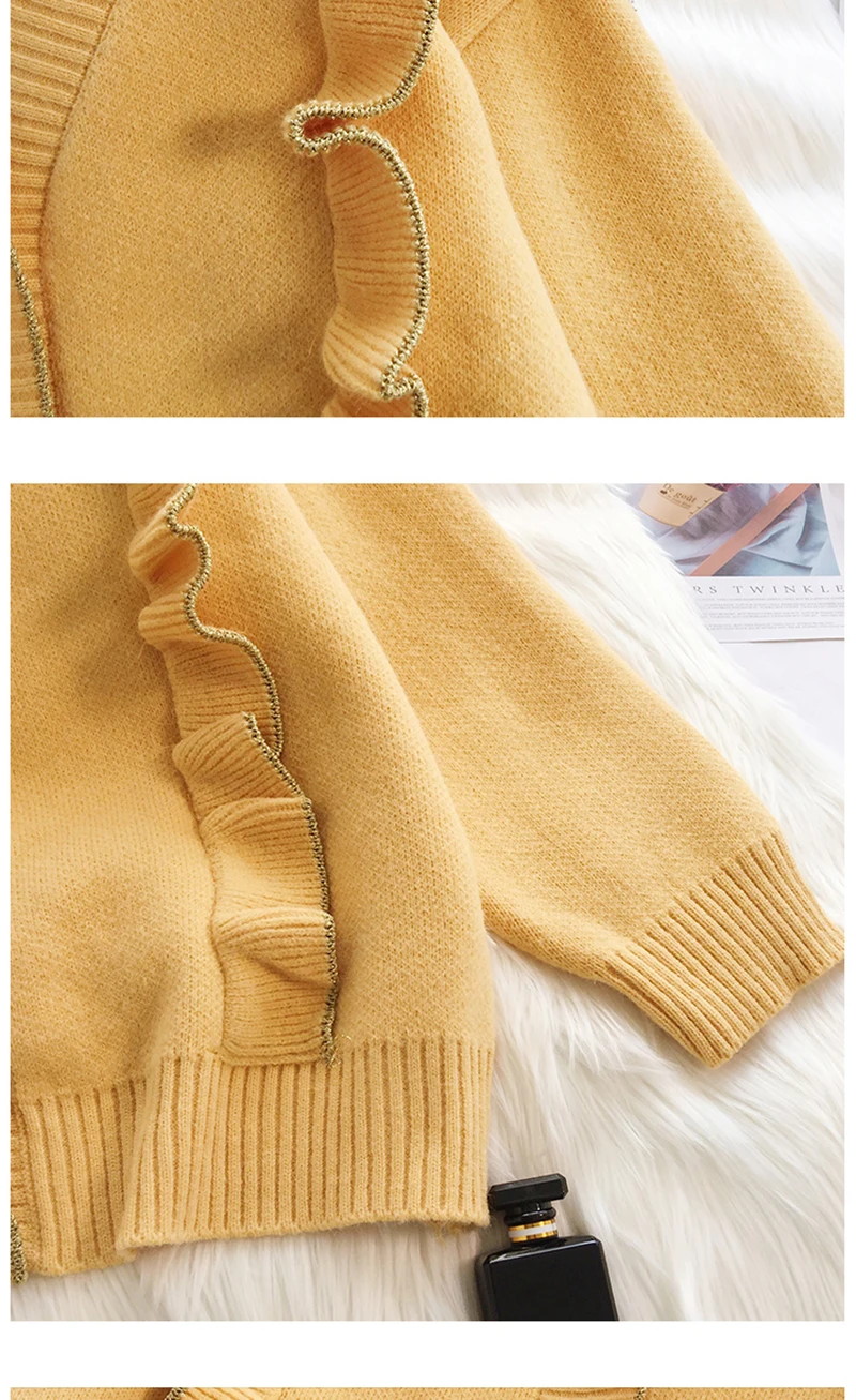 Весенний вязаный кардиган, свитер, пальто оверсайз с длинным рукавом и оборками, женские корейские свитера красного, бежевого, серого, желтого цветов, верхняя одежда для женщин