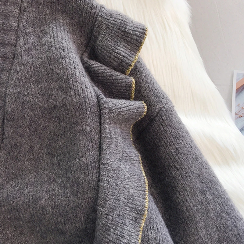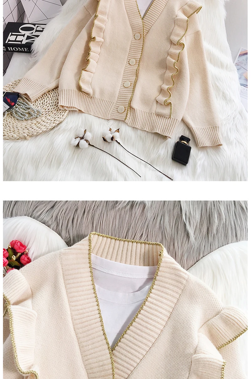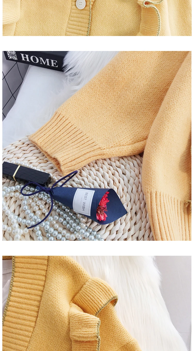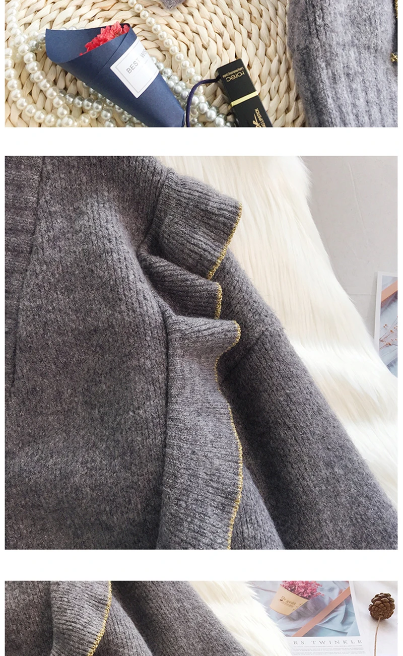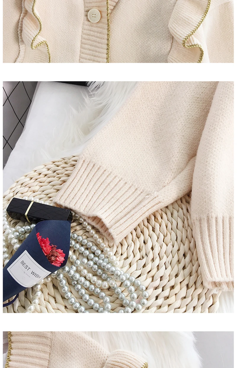 Весенний вязаный кардиган, свитер, пальто оверсайз с длинным рукавом и оборками, женские корейские свитера красного, бежевого, серого, желтого цветов, верхняя одежда для женщин