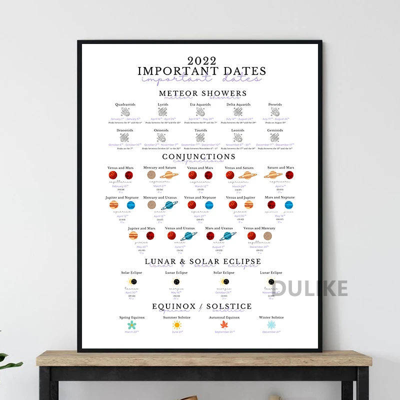 2022 плакат с лунным календарем, принты астрологического гида, лунный календарь 2022, Художественная Картина на холсте, фаза Луны, Гримуар, Волшебный настенный Декор