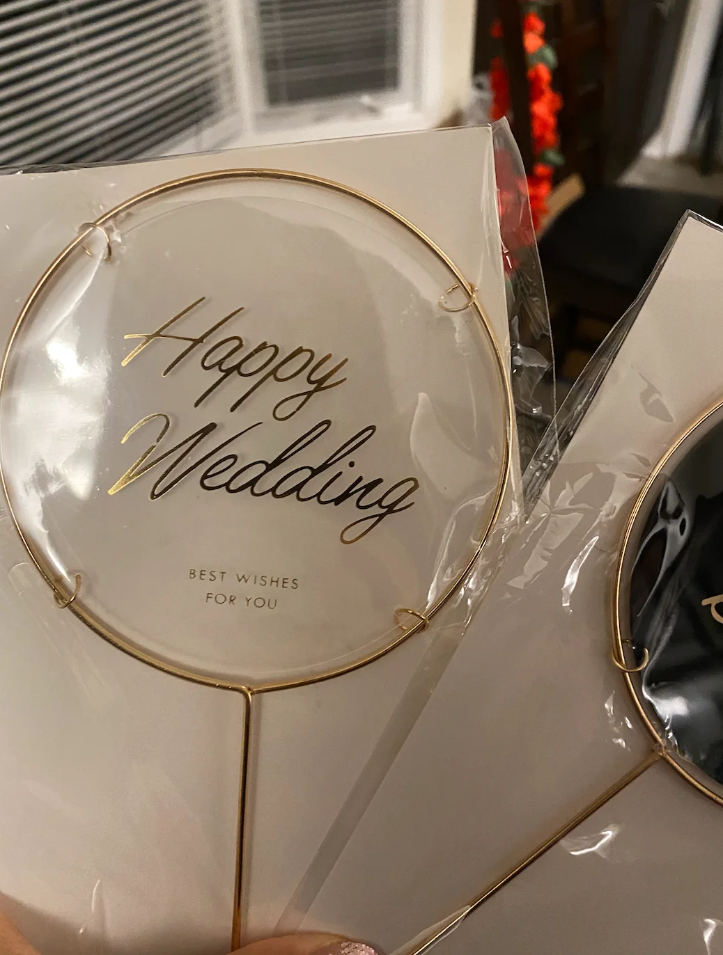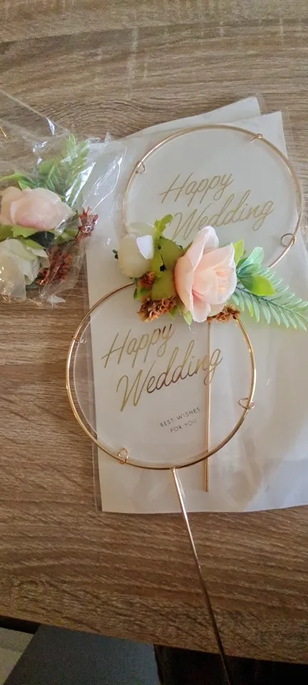 К сожалению, несмотря на плотную упаковку в пупырки, при транспортировке пострадал (погнулась ножка и колечки не все ровные). Но топер все равно красивый, украшение цветочное тоже симпатичное, но запах..... брррррр, положила выветриваться. Радует, что присутствует защитная пленка. Спасибо!Совместная доставка 18 дней в СПб.