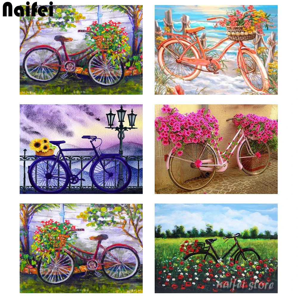 5d квадратная/круглая алмазная живопись наборы полный Винтажный Велосипед сад мозаика цветок вышивка велосипед украшения для дома алмазное искусство