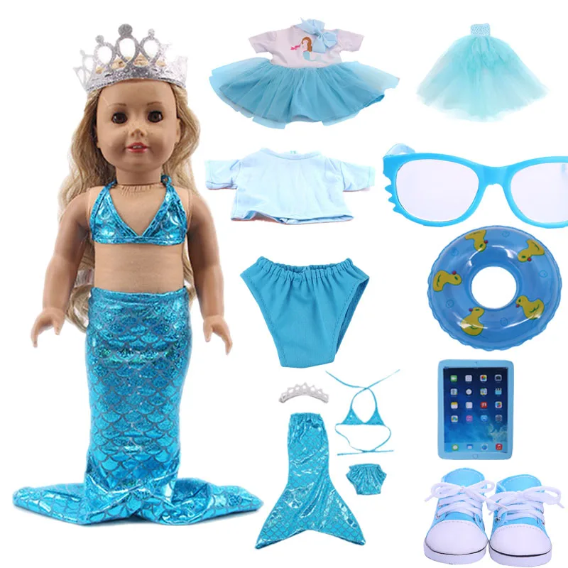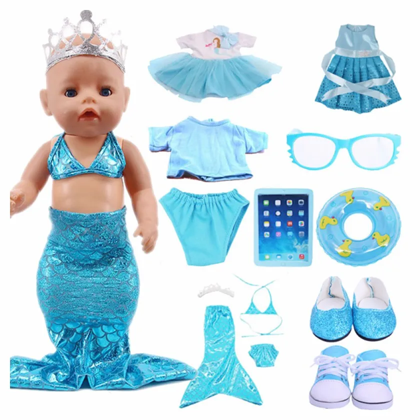 Одежда для кукол, голубая серия, костюм Эльзы, туфли, купальник русалки для 18-дюймовой американской куклы для девочек и младенцев 43 см, игрушка для новорожденных