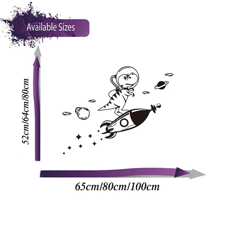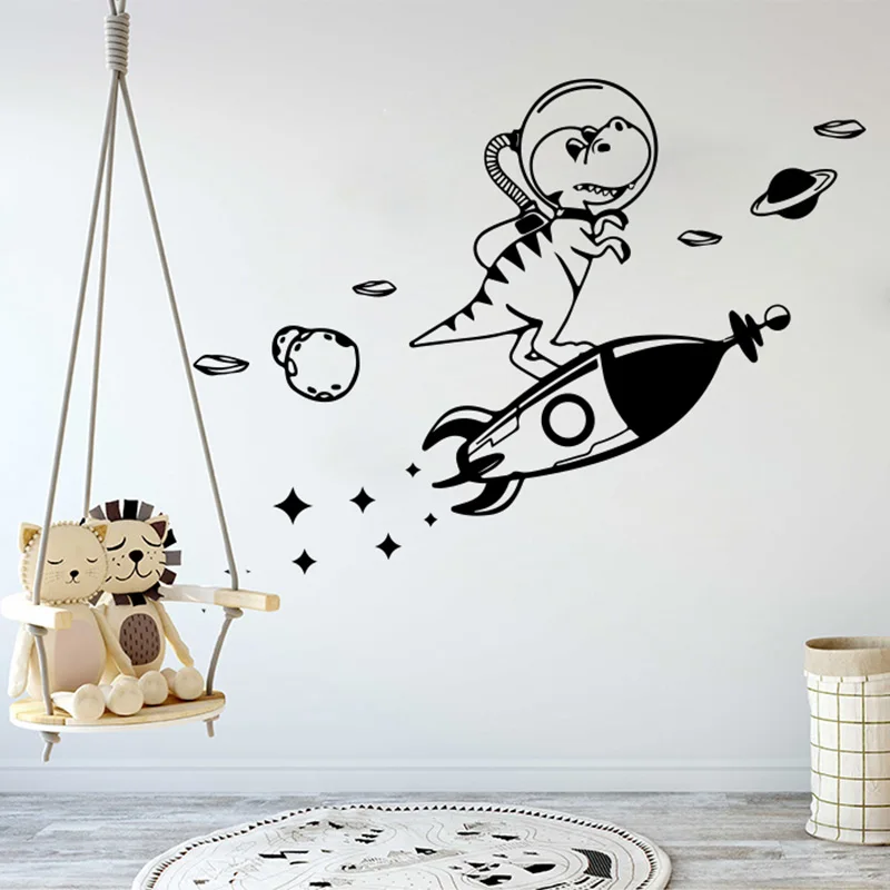 Мультяшный динозавр Космос планеты звезды метеорит Наклейка на стену для детской комнаты Детский динозавр астрономический Парк Юрского периода Наклейка на стену