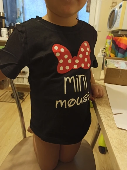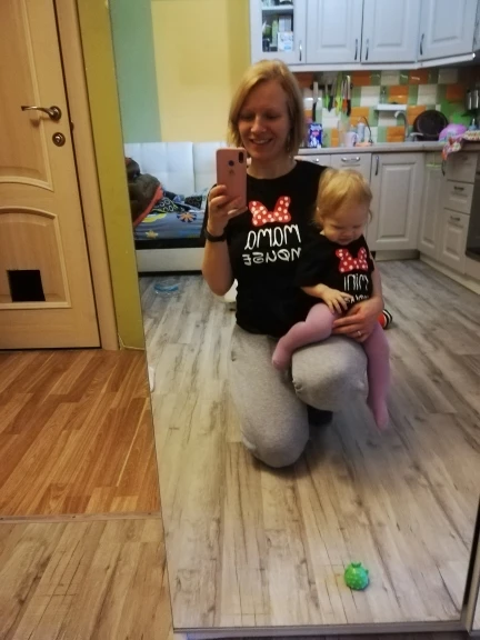 Футболки хорошие! Качество ткани - супер! Плотный хлопок. Швы аккуратные. Насколько долгое продержится наклейка - не известно. Но так вроде все хорошо. Себе на размеры 48 взяла xl, ребёнку специально взяла с запасом. Чтобы перестраховаться. 9месяцев ребёнку, взяла 90. Думаю, летом в год с небольшим вообще отлично будет