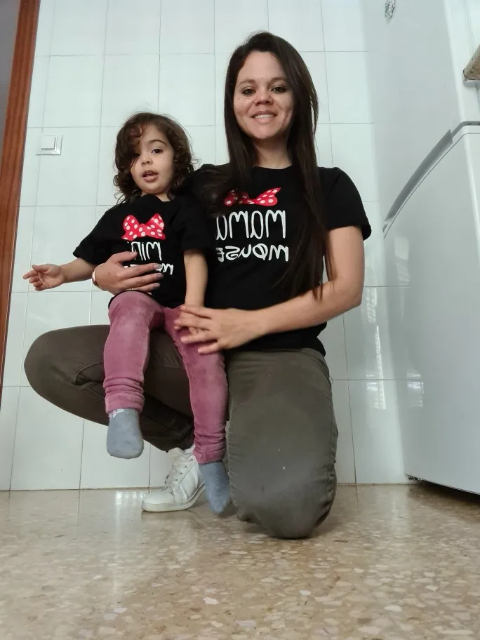Muy bonita..mi niña tiene 15 meses y pesa 10 kilos usa todavía la talla 9-12 meses... es delgada..compré la talla 2T y le está un poco grande pero estamos en enero y hace frío... recomiendo para dos años comprar el 3T...pienso en el verano le estará perfecta la camiseta... gracias!!!