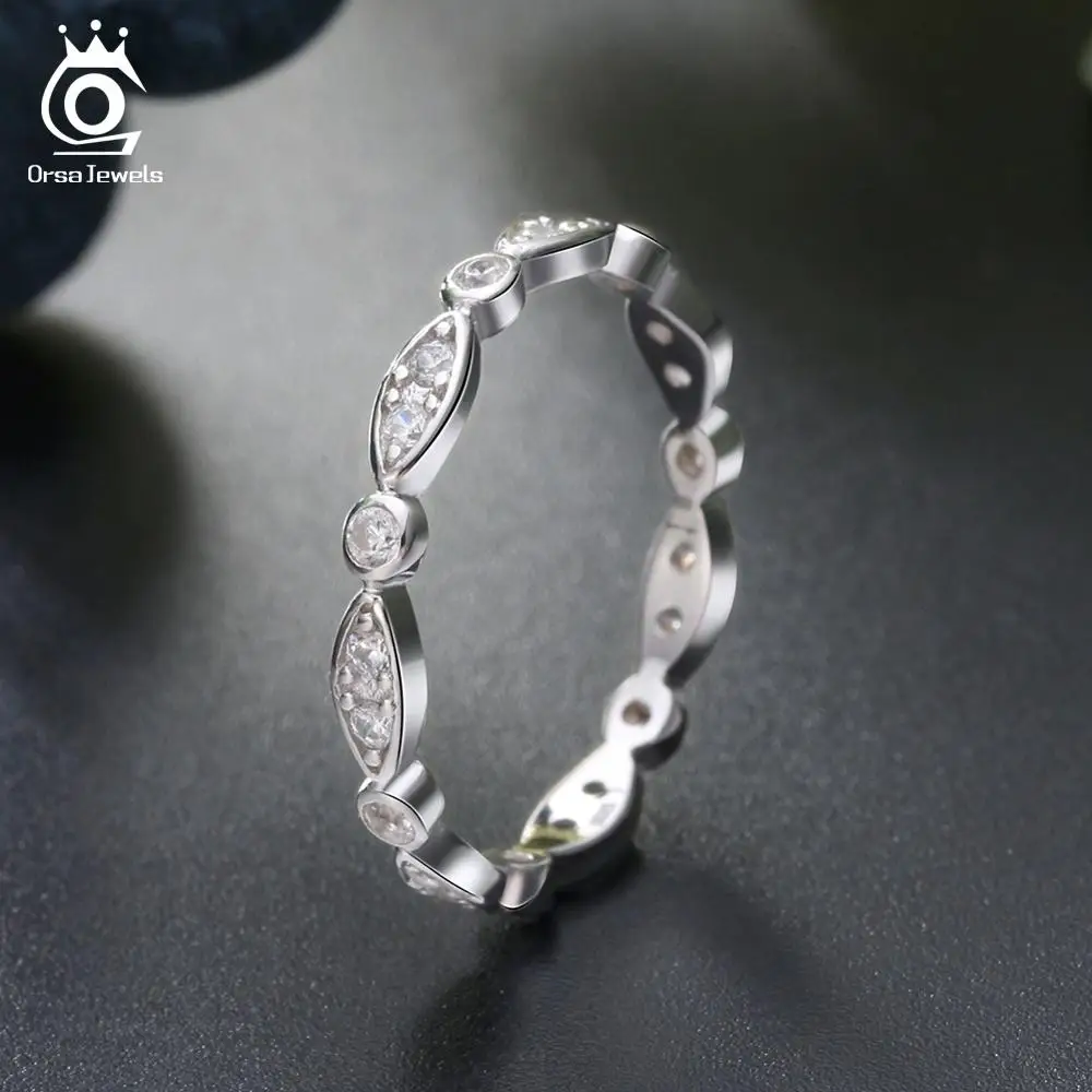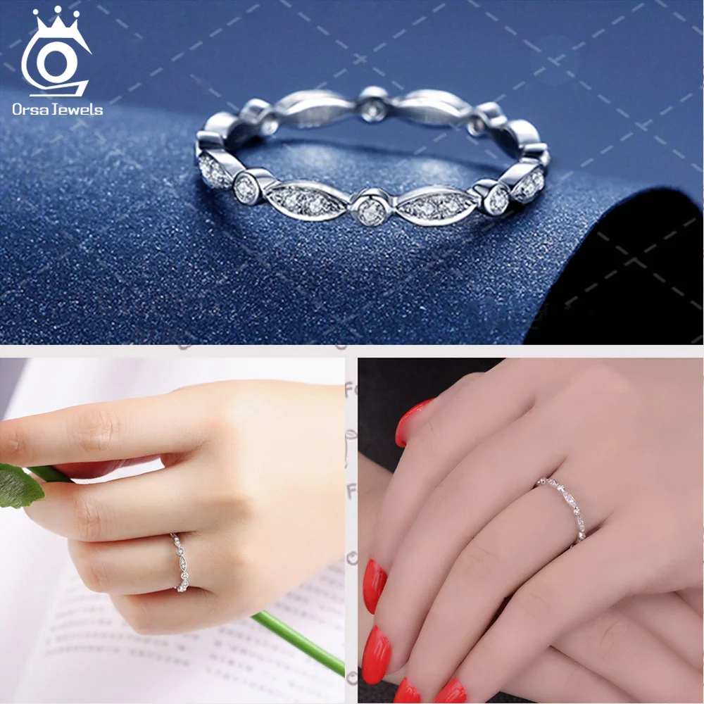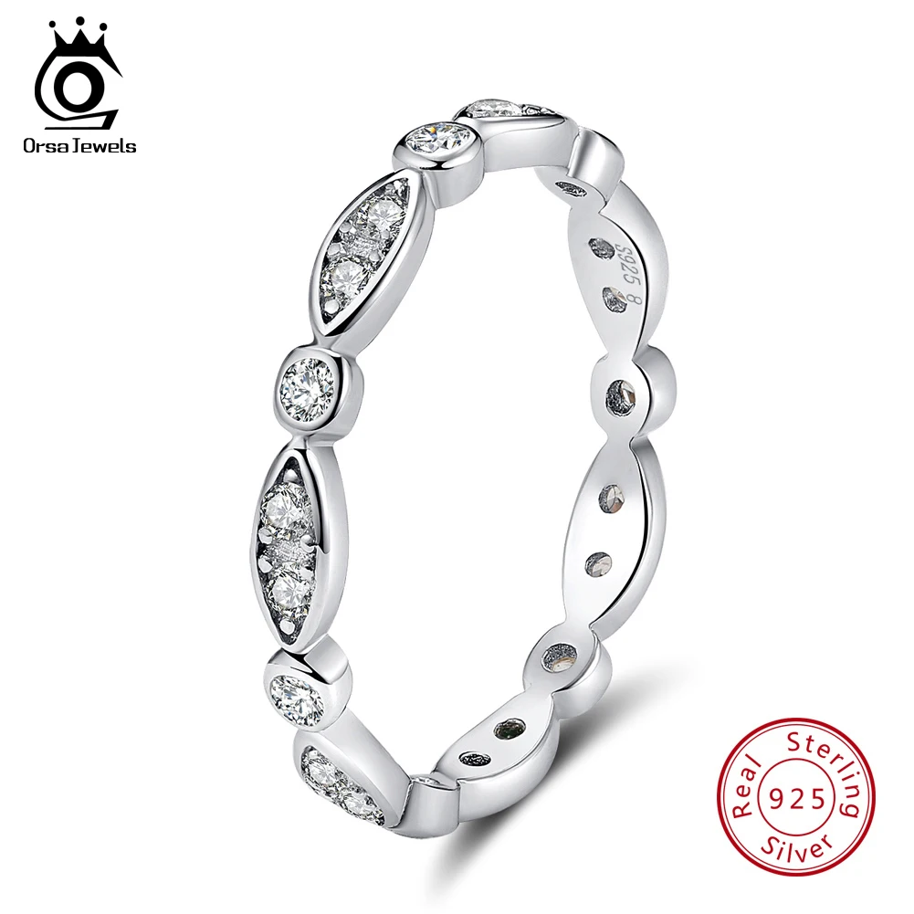 ORSA JEWELS классическое кольцо из стерлингового серебра 925 пробы AAAA Marquise CZ геометрические штабелируемые кольца для женщин свадебный браслет ювелирное изделие подарок SR71