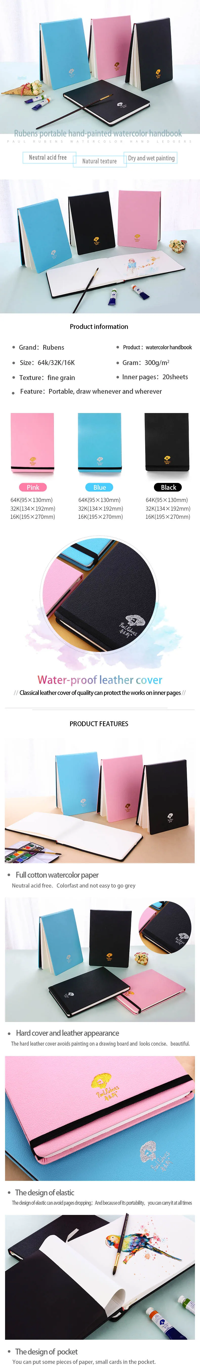 Акварельная книга Paul Rubens товары для рукоделия, бумажный альбом, 100% хлопок, 20 листов, без кислоты, для акварельной гуаши, акриловая
