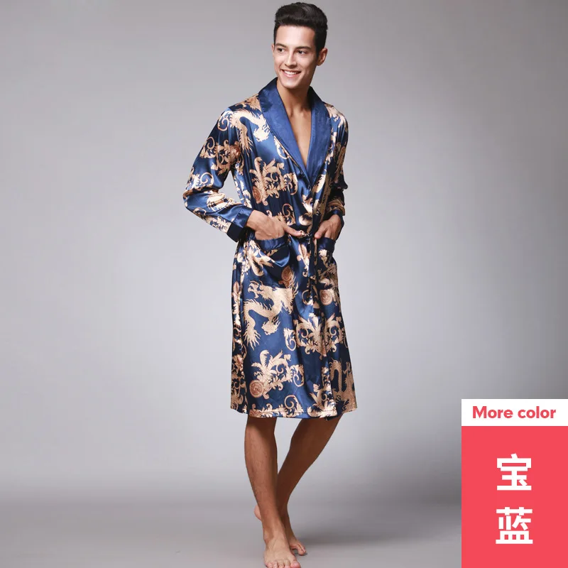 Халат-кимоно мужской с принтом, атласное шелковое ночная рубашка, П...
