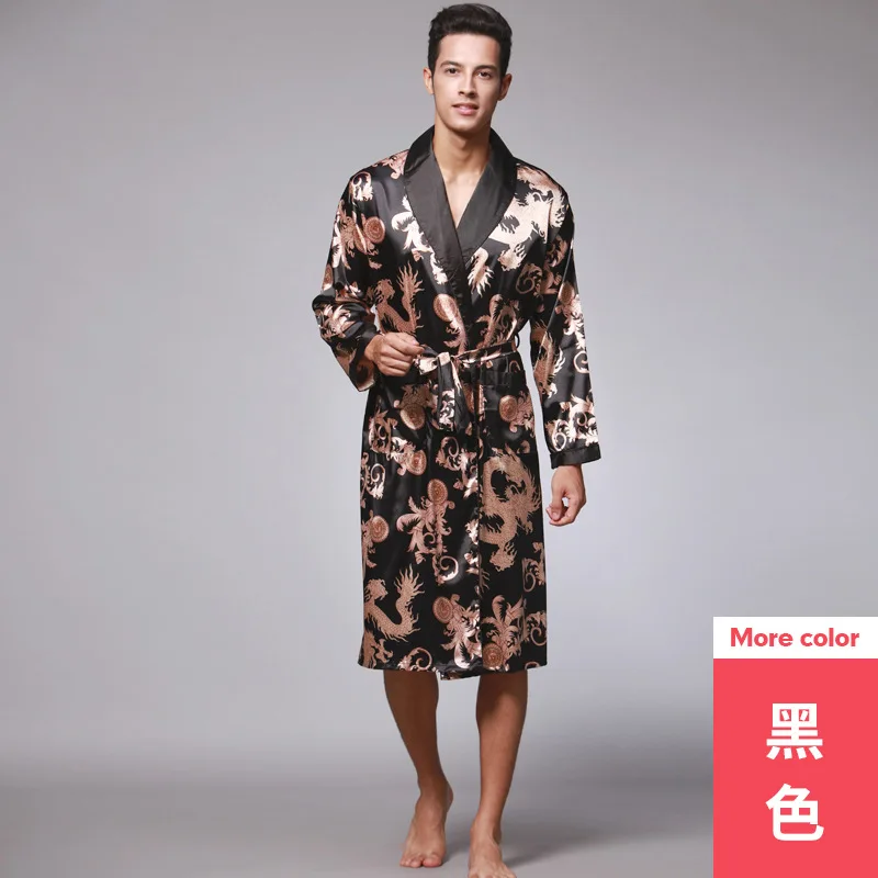 Халат-кимоно мужской размера плюс, Шелковый, с принтом дракона, с д...