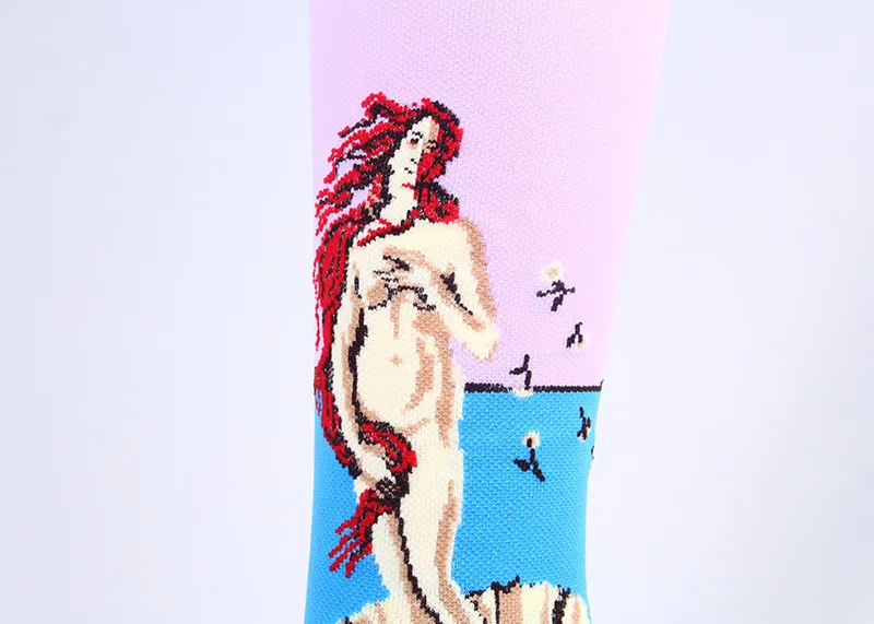 Компрессионные носки с масляной росписью для мужчин и женщин, Mona Lisa Sky Kiss Wave, перламутровые чулки, нейлоновые Компрессионные носки RunSport, новинка