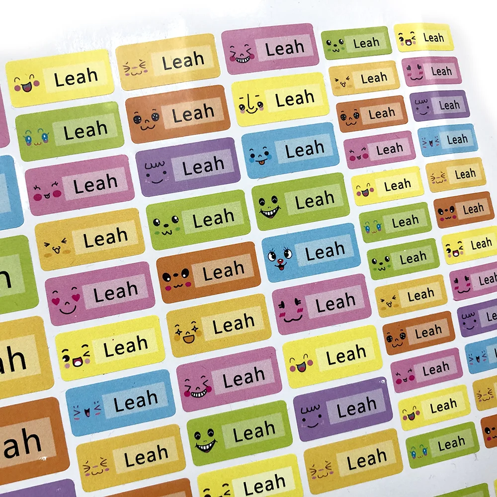 Наклейки с именем, цветные водонепроницаемые, разные размеры, на заказ
