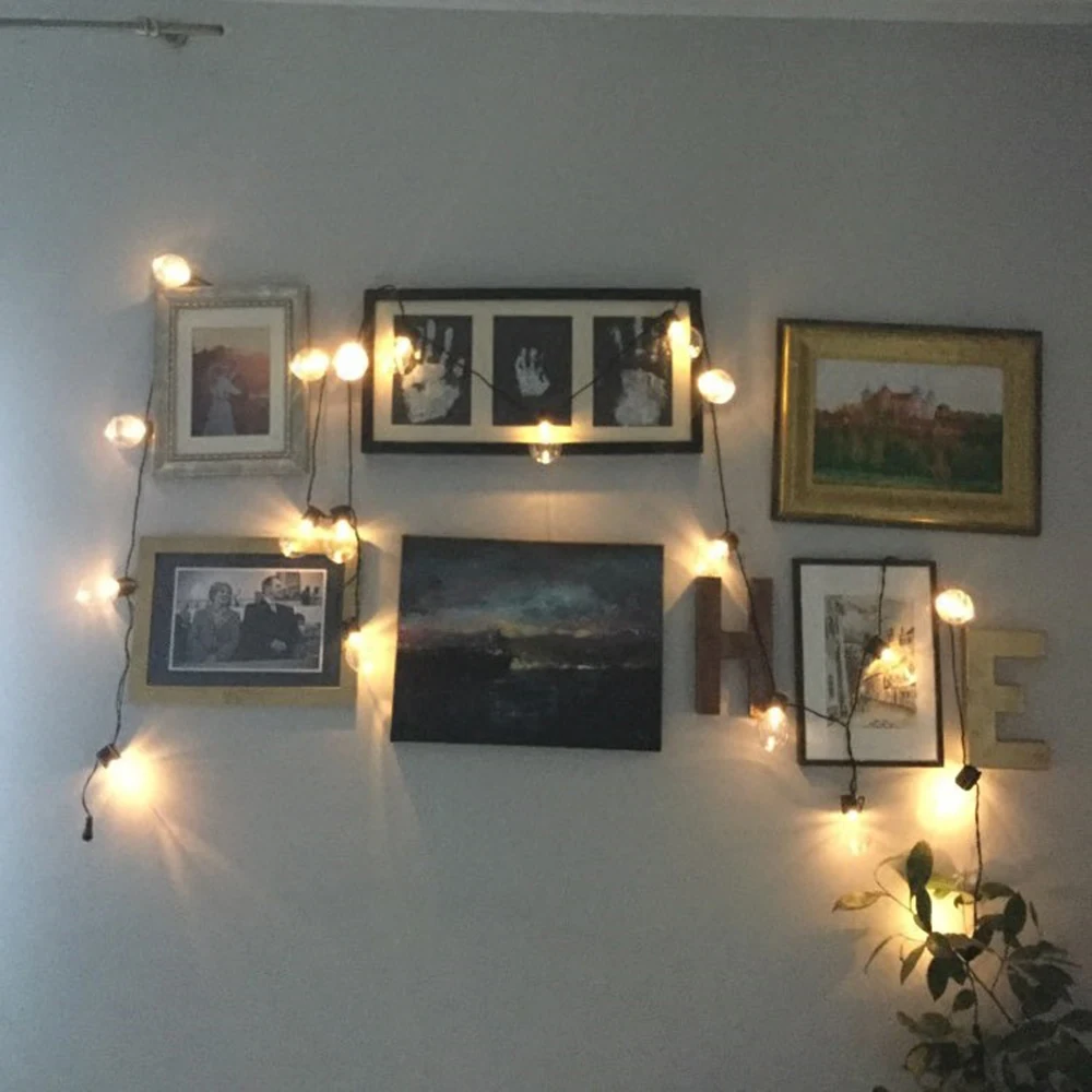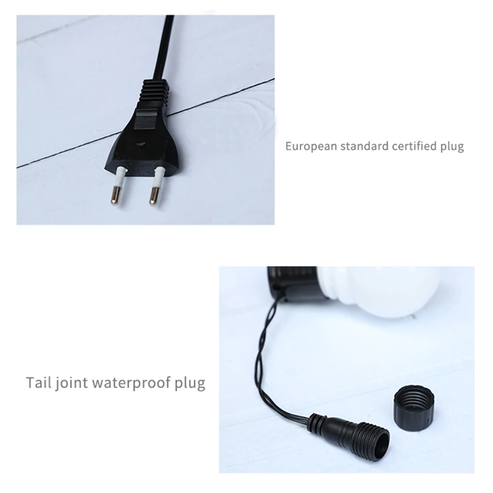 Прозрачный/молочно-белый шар, это Подключаемая лампочка струнная лампа с 20 шаровыми шариками, низкое энергопотребление, безопасный и надежный. Его можно поставить или повесить на стены, окна, двери, полы, потолки, травы, елки и т. Д. Прекрасное украшение на День святого Валентина, Рождество, вечеринку, свадьбу и т. Д.