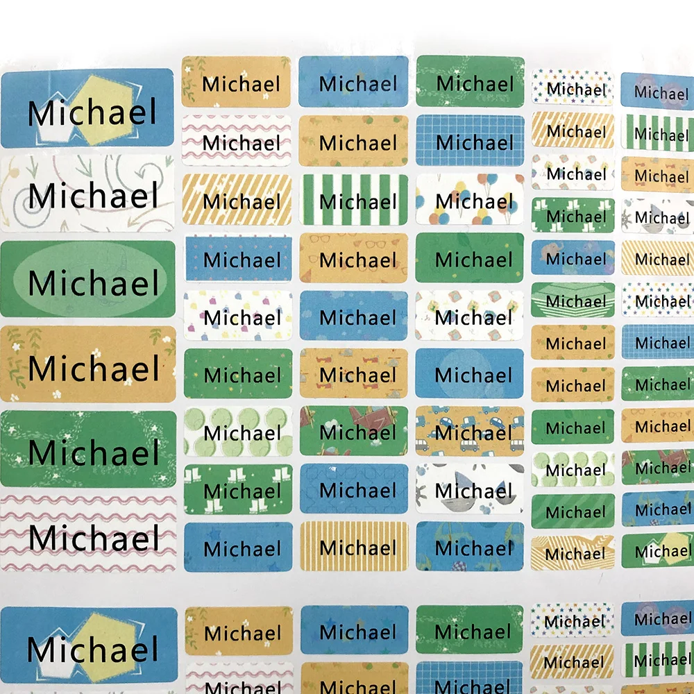Цветные наклейки с именем для мальчиков, индивидуальные ярлыки, цветные водонепроницаемые ярлыки для детей, школьные принадлежности, скрапбукинг, Декор, 114 шт.