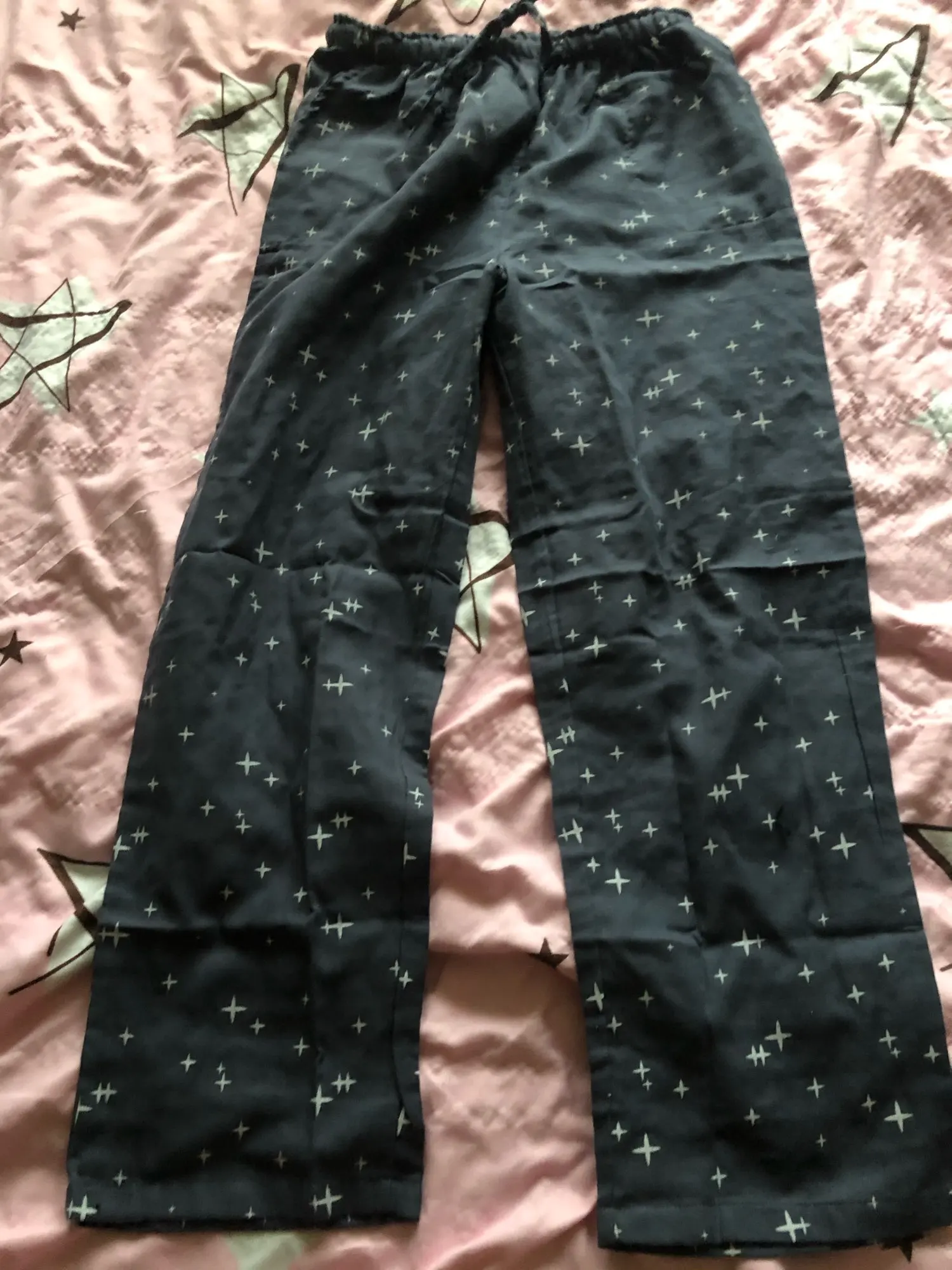 Прекрасные домашние или пижамные штаны, хлопок, с карманами. Одела, показались узковаты, через 5 минут носки уже ничего не обтягивало, сидят великолепно. Рекомендую