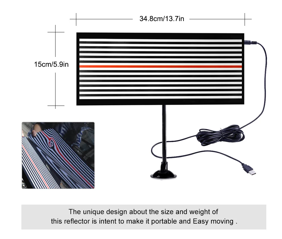 Особенности:-Найти вмятины/вмятины более легко и правильно, очень легко контролировать.-Может быть закреплен на корпусе автомобиля с присоской, удобно-Это профессиональная отражательная доска для безболезненного ремонта вмятин.