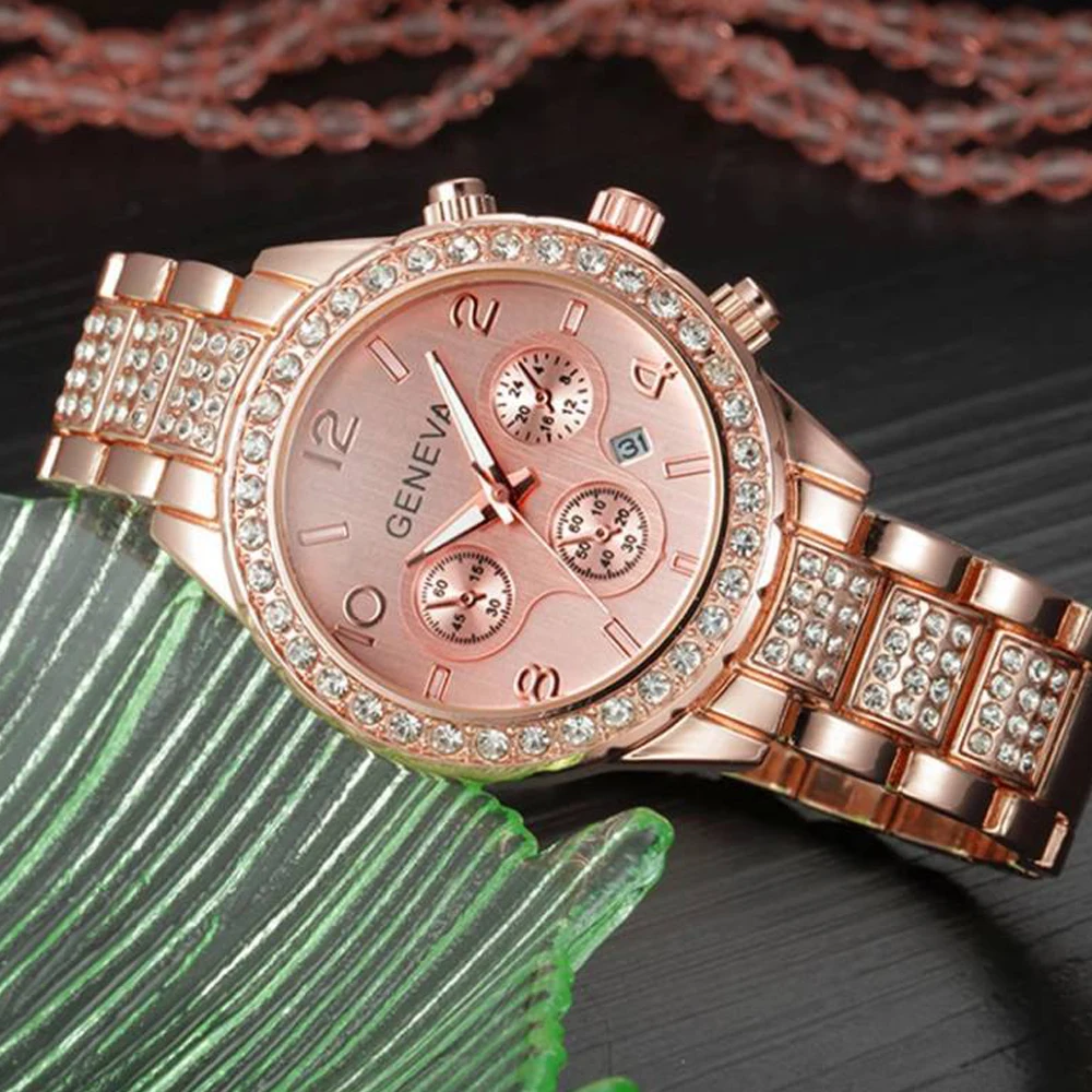 Роскошные женские кварцевые часы из розового золота, женские часы с кристаллами и бриллиантами, новые женские наручные часы Geneva, женские часы в стиле хип-хоп, 2020