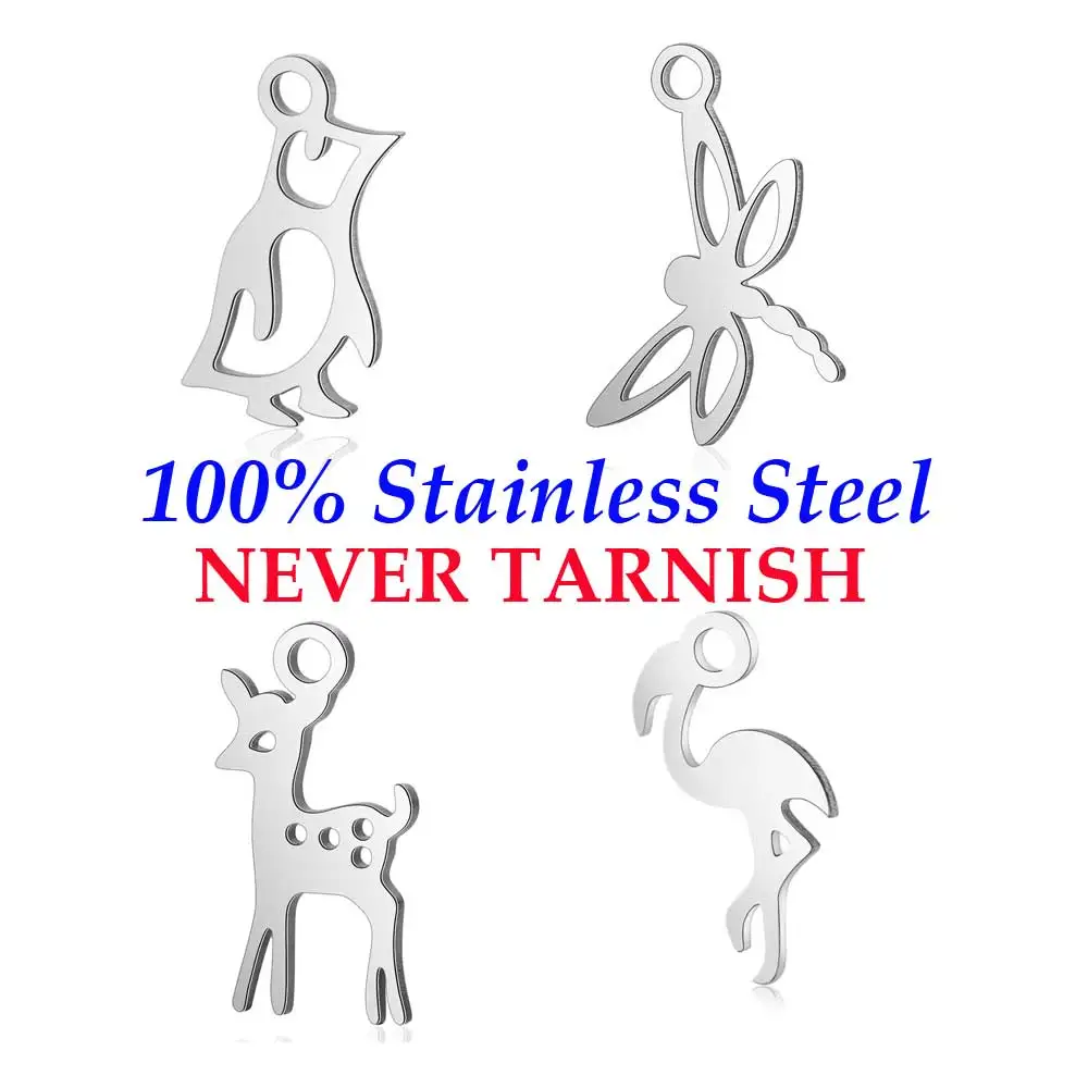 10 шт. маленькая животное олень Фламинго морская Лошадь Подвеска в виде стрекозы оптовая продажа 100% нержавеющая сталь никогда не тускнеет ювелирные подвески для самостоятельного изготовления