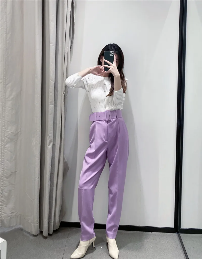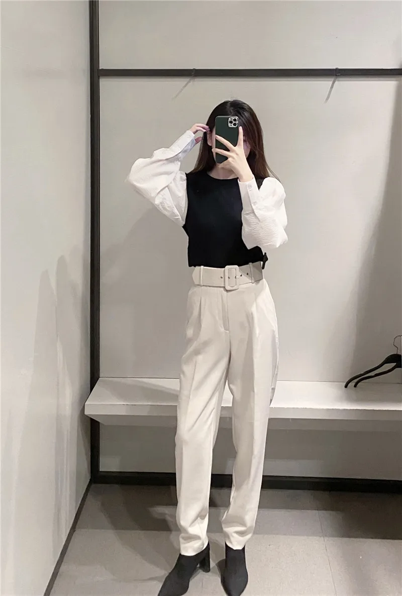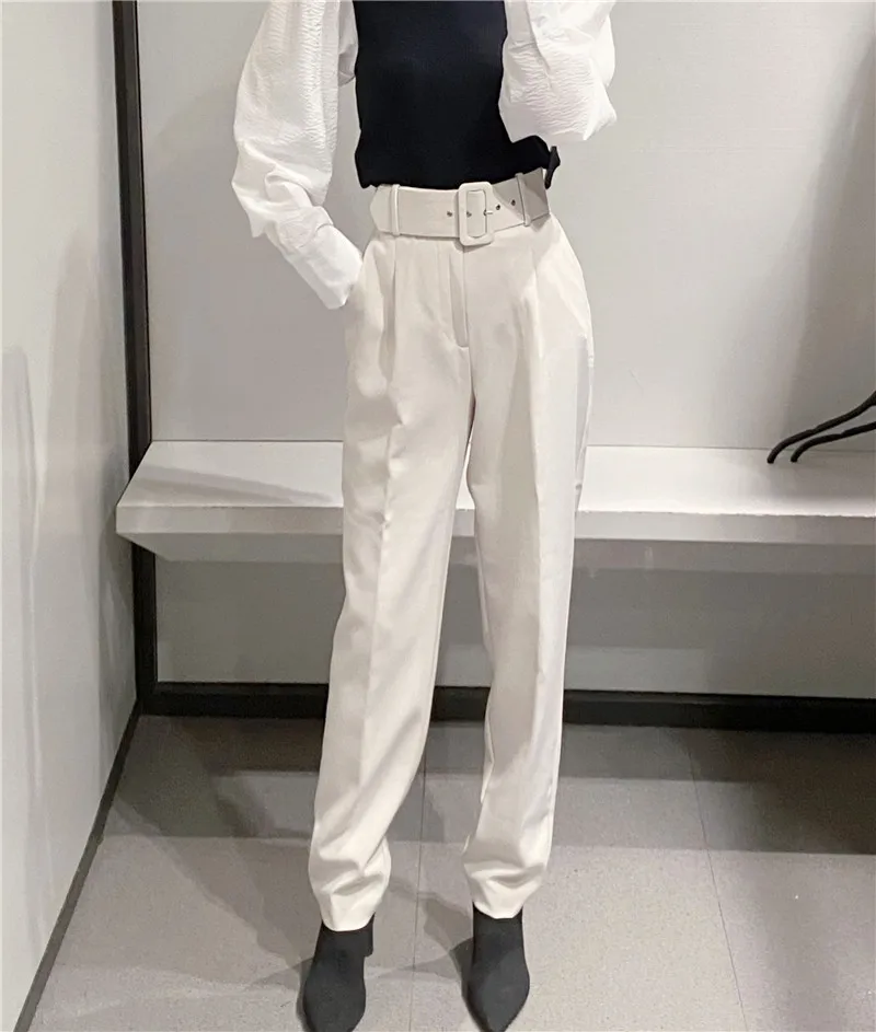 Женские элегантные черные брюки с поясом и карманами на молнии, уличная одежда 2022, повседневные шикарные брюки ярких цветов