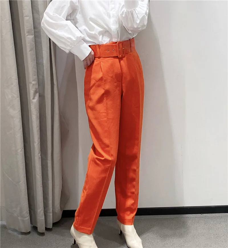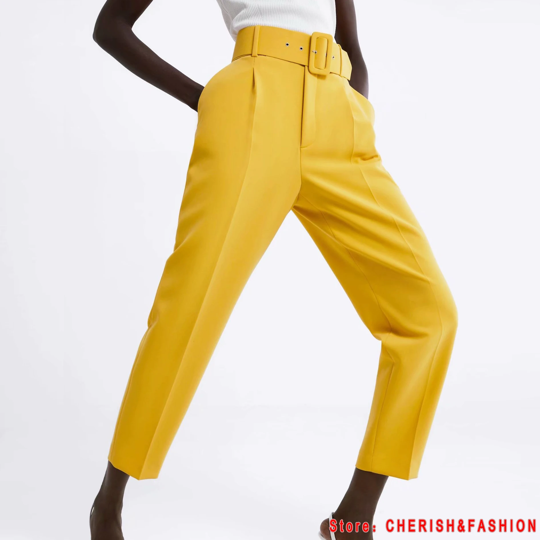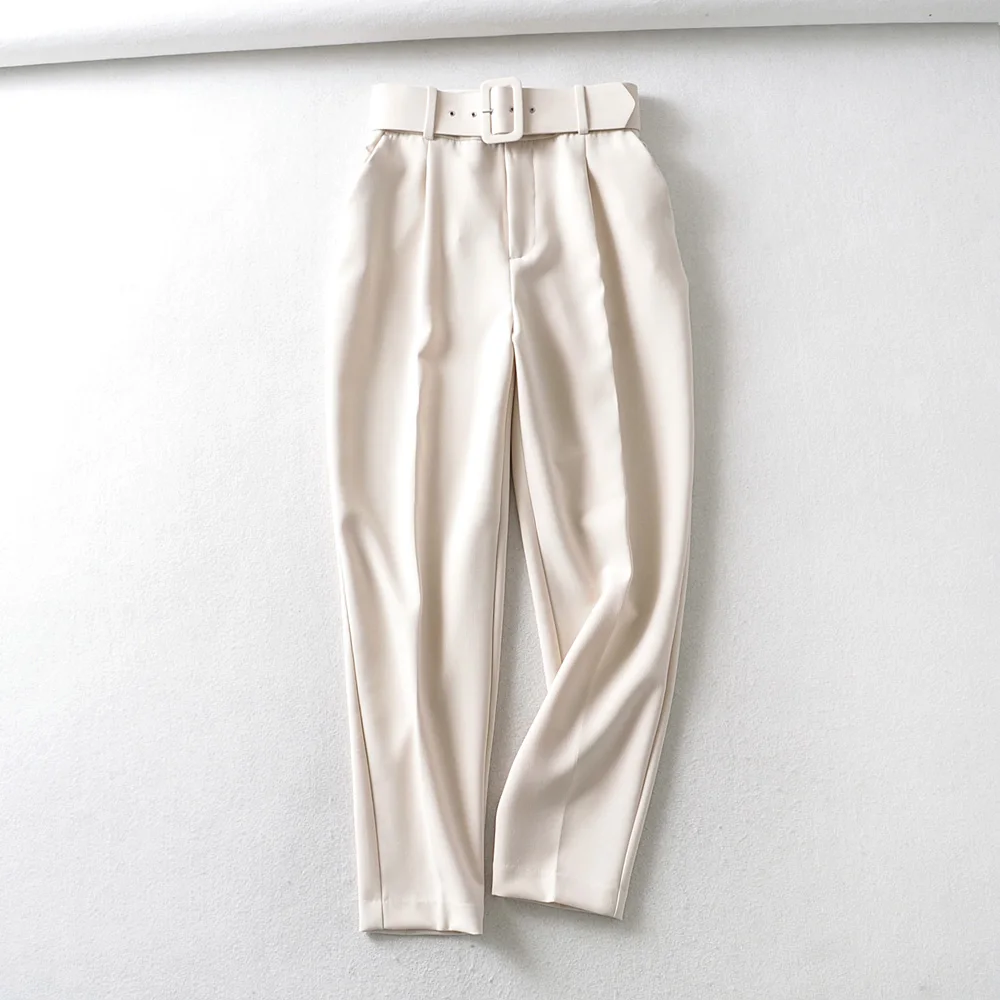 Женские элегантные черные брюки с поясом и карманами, однотонные женские уличные брюки на молнии, повседневные шикарные брюки 2022 карамельных цветов