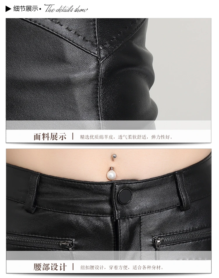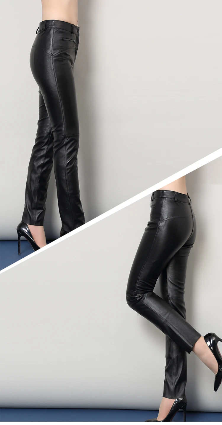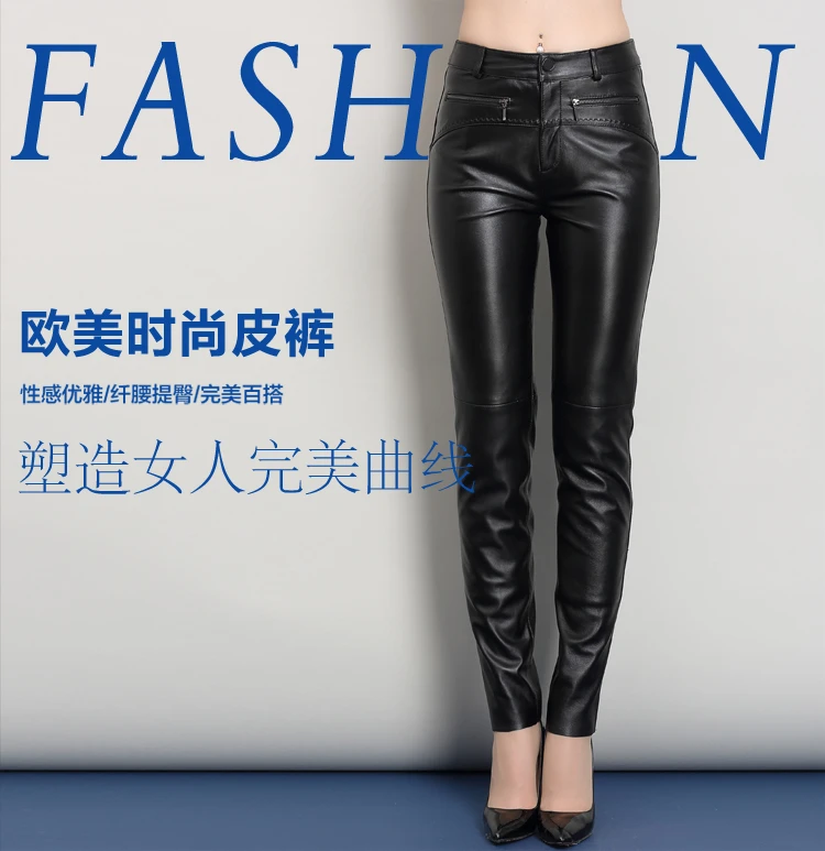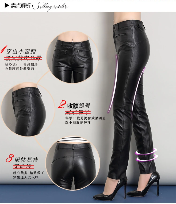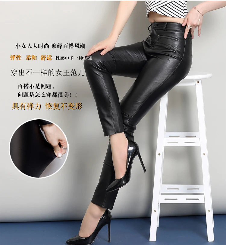 Осенне-зимние женские брюки из натуральной кожи женские брюки с высокой талией брюки из овечьей кожи узкие брюки-карандаш