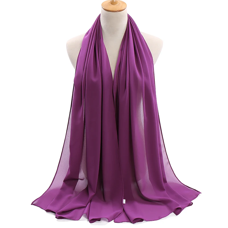 Новейшие мусульманские, однотонные шифоновые шарфы-хиджабы 2020, Же...