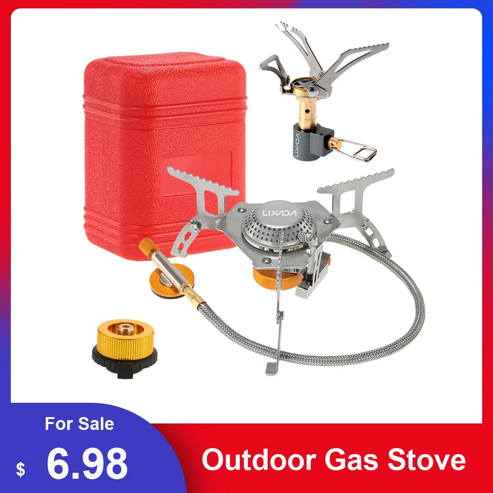 Уличная газовая плита Lixada 3000 Вт, складная Электронная Газовая горелка, газовая плита для кемпинга, приготовления пищи, пешего туризма, портативная кухонная утварь, плита с разделением