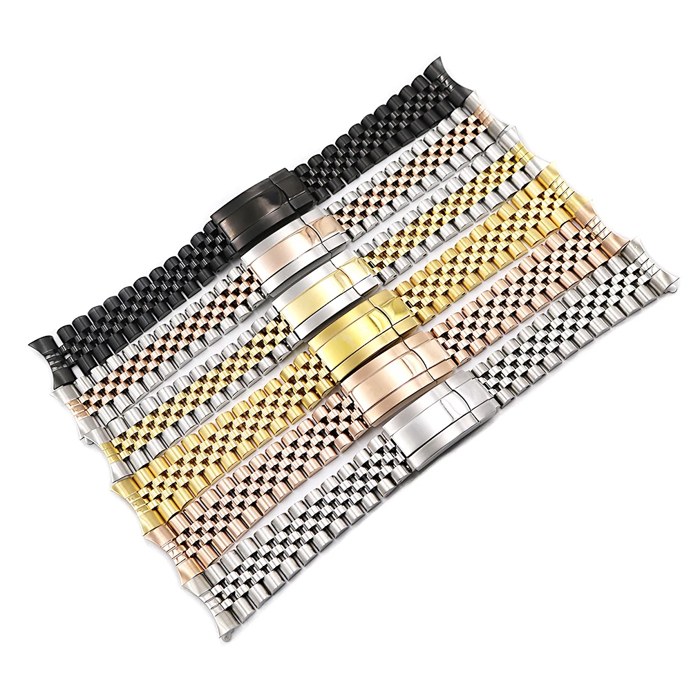 Ремешок для часов CARLYWET, 19, 20 мм, изогнутый, с резьбой, из нержавеющей стали, с застежкой Oyster