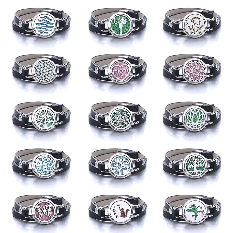 Древо жизни ароматерапия ювелирные изделия диффузор эфирного масла медальон кожаный браслет магнит нержавеющая сталь духи ароматический браслет