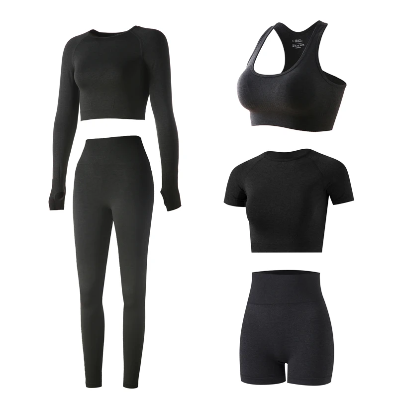 5 шт., женский летний комплект для йоги, короткий топ с коротким рукавом, рубашки, леггинсы для бега, одежда для спортзала