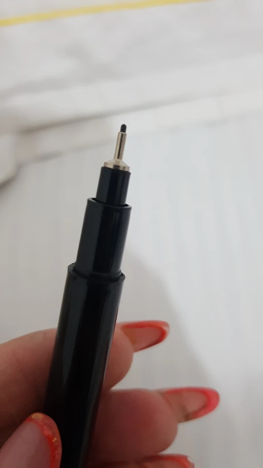 Es igual que la descripción, punta fina y tinta negra muy bueno para hacer dibujos en las uñas.
