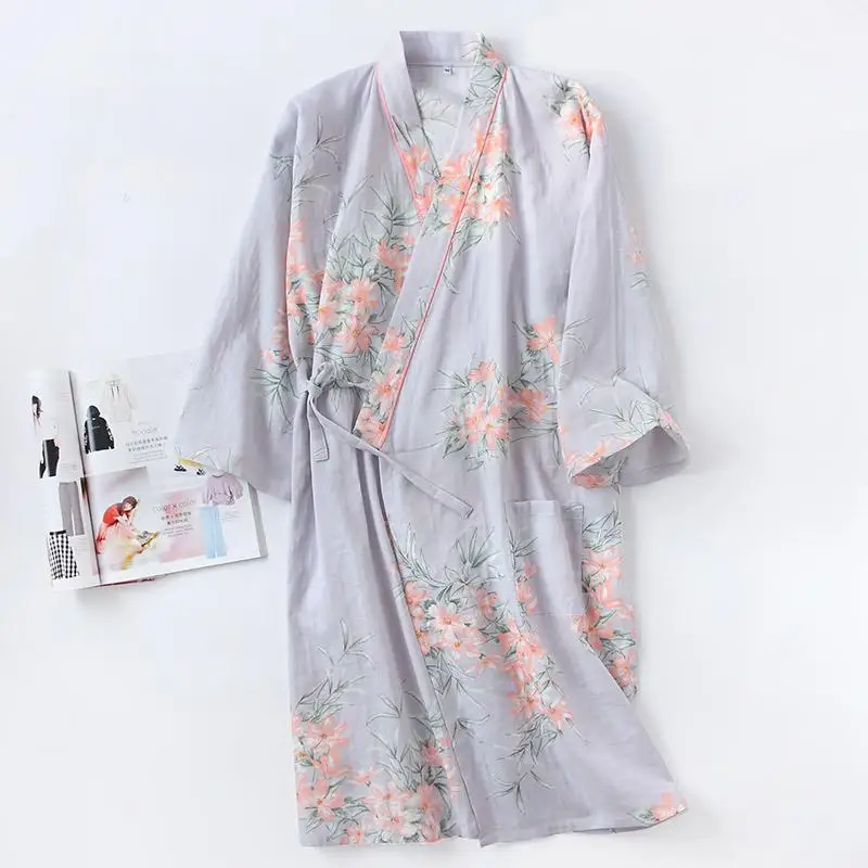 Пижама женская в японском стиле, халат из чистого хлопка, мягкая уд...